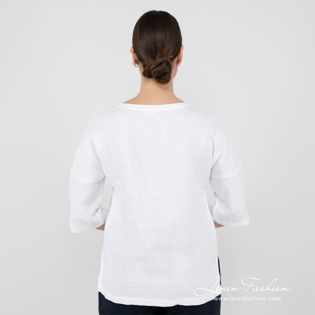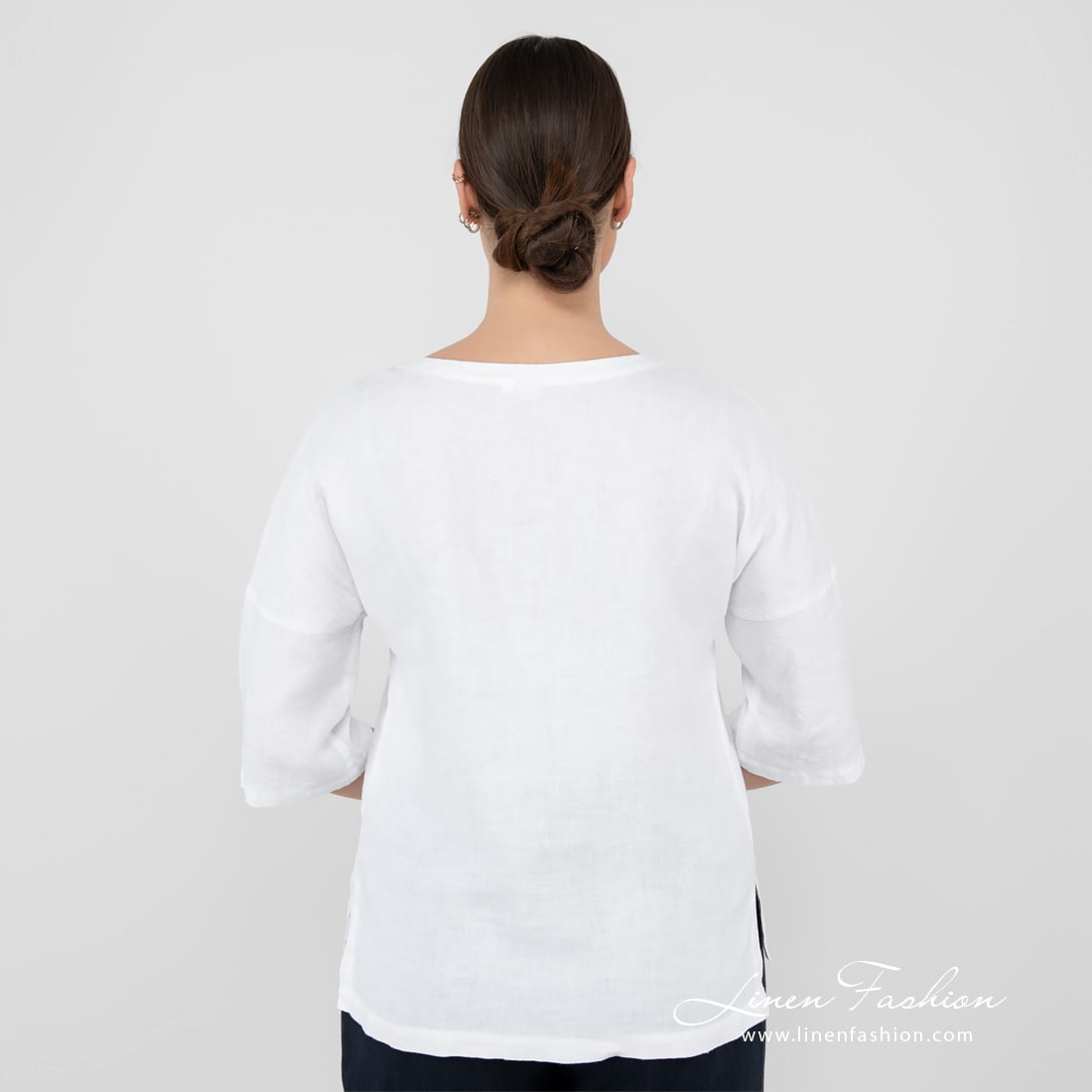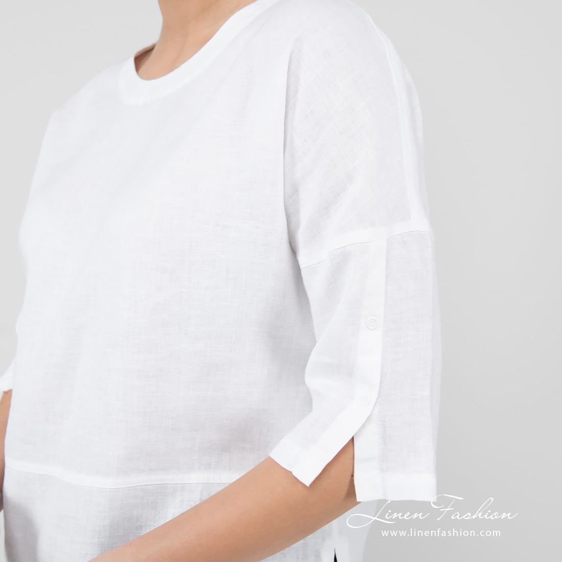- Detaljer: rund halsutskjæring, 3/4-ermer med trykknapper, splitter i sidene