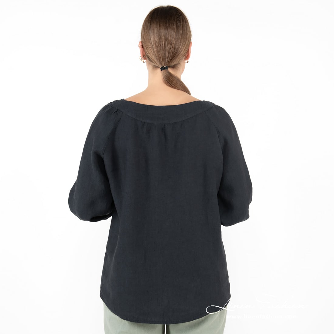 - Detaljer: rund halsutskjæring med legg, 3/4 raglanermer med legg over mansjettene