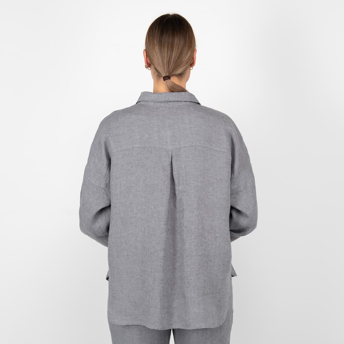 - Produktmodell: oversized skjortestil, hoftelengde, lange ermer