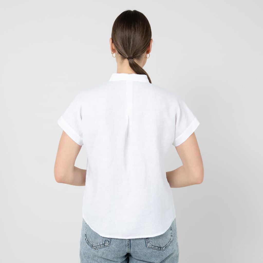 - Produktmodell: skjortestil, rett silhuett, hoftelang, korte ermer