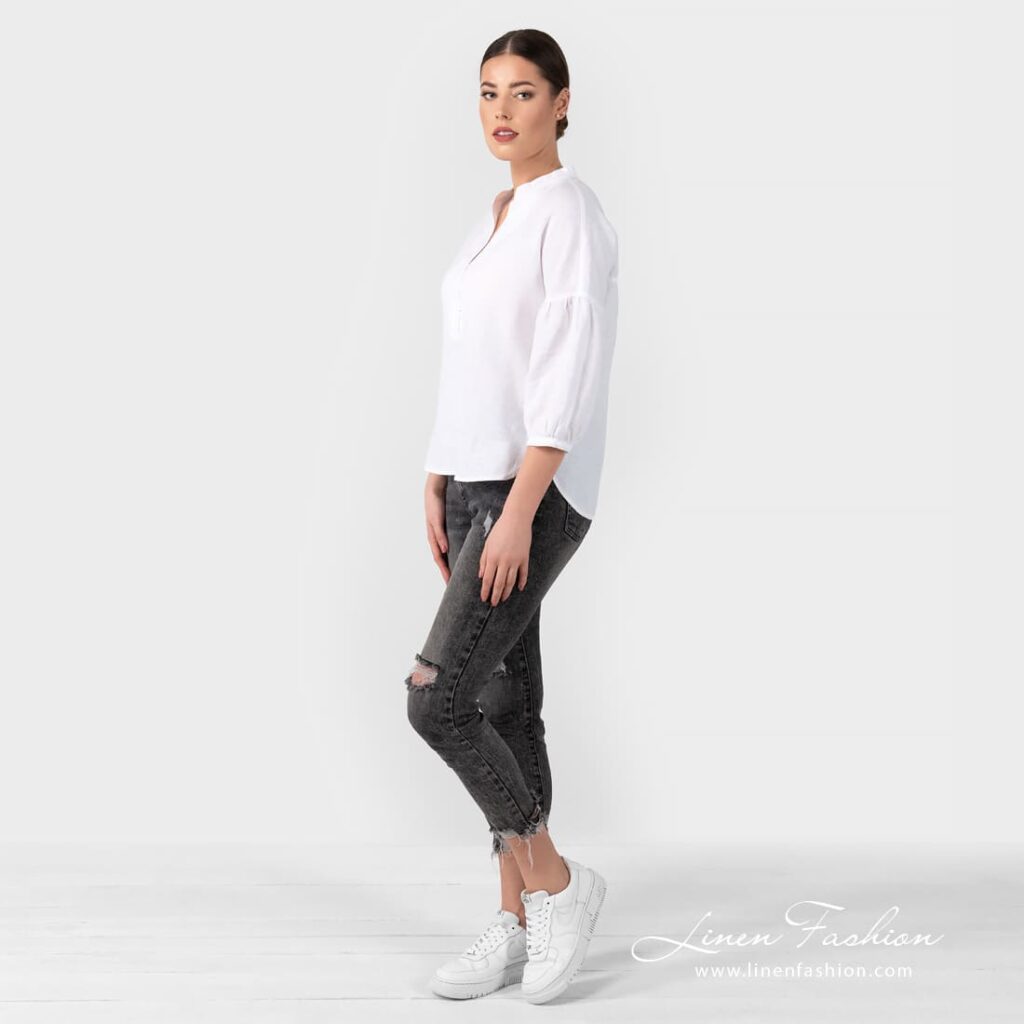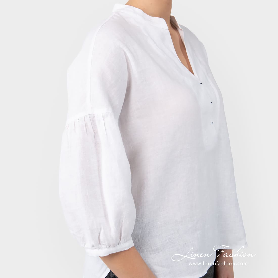 - Detaljer: V-hals, 3/4 svakt puffede ermer