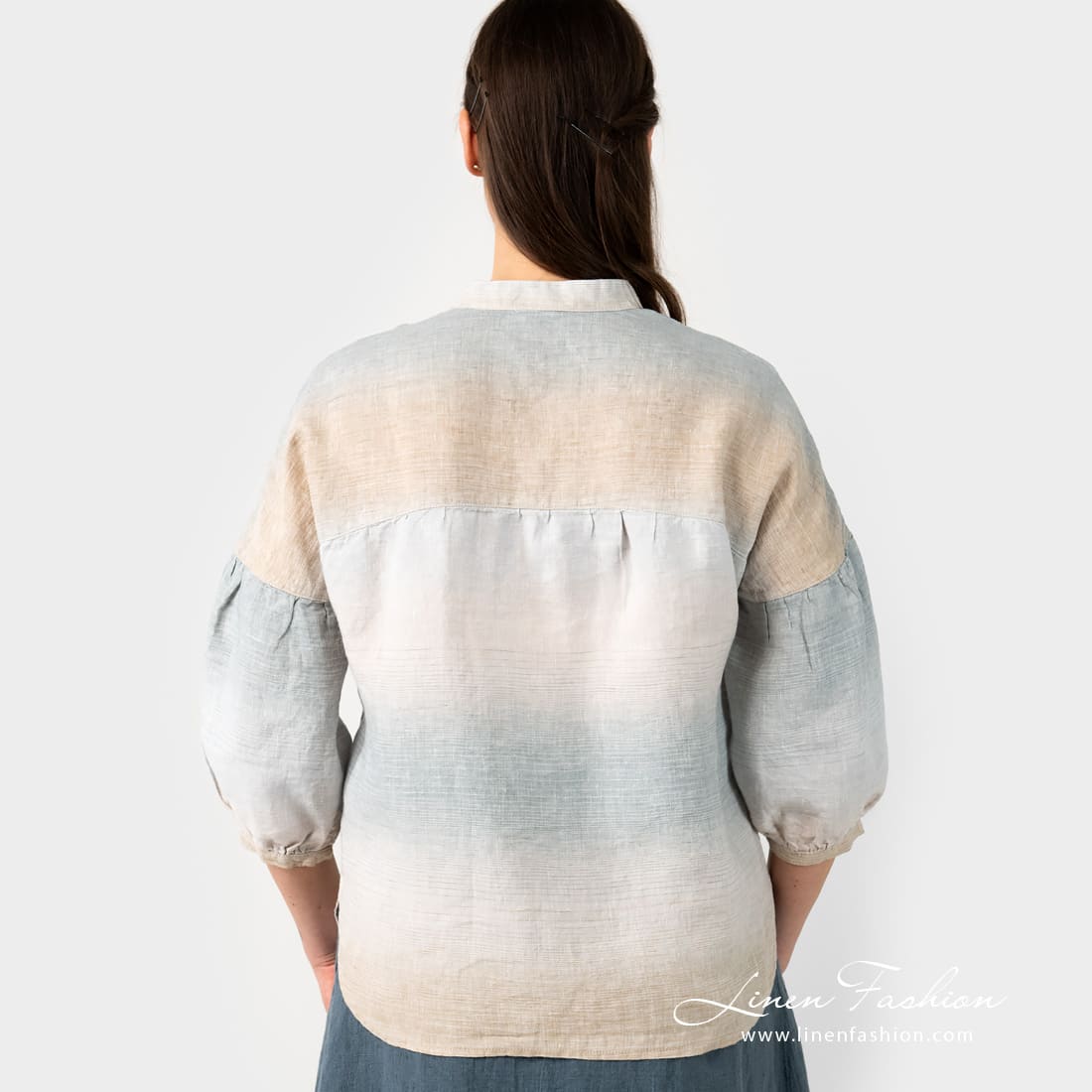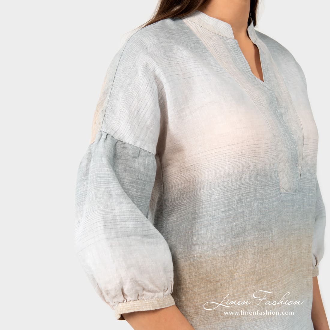 - Detaljer: V-hals, 3/4 svakt puffede ermer