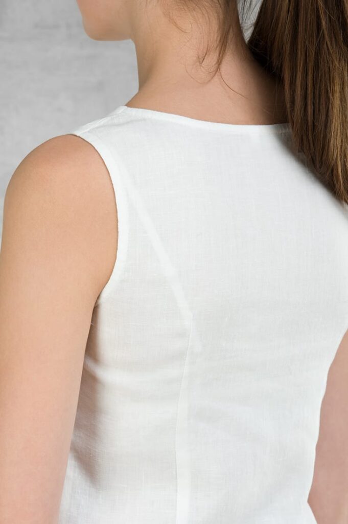 - Produktmodell: rett silhuett, ermeløs, figursydd bak