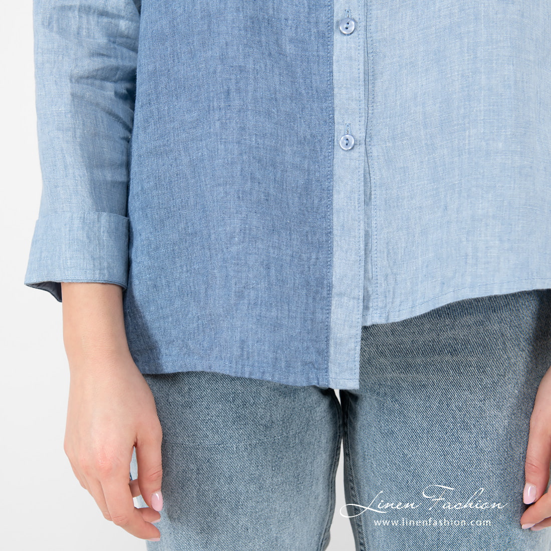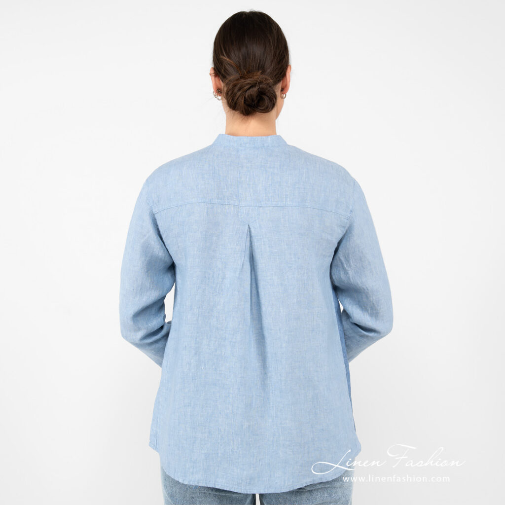 - Detaljer: V-hals, kinakrage, lange ermer, mansjetter med splitter, knappelukking foran, høyre sidelomme foran