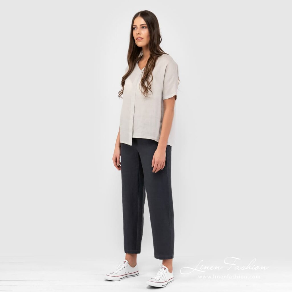 - Detaljer: V-hals med bred brettet kant, legg foran