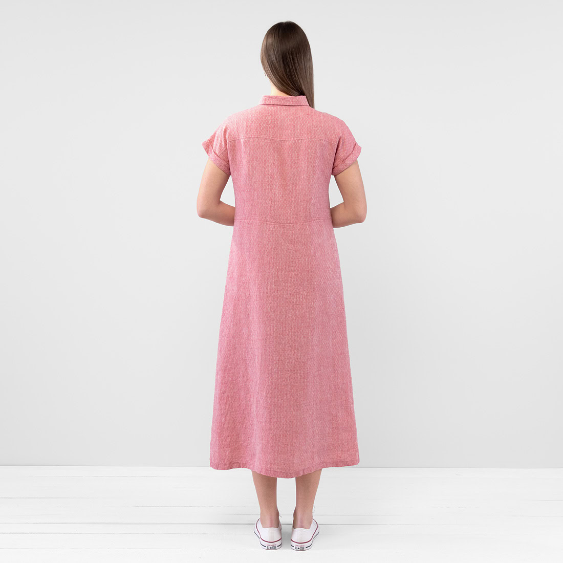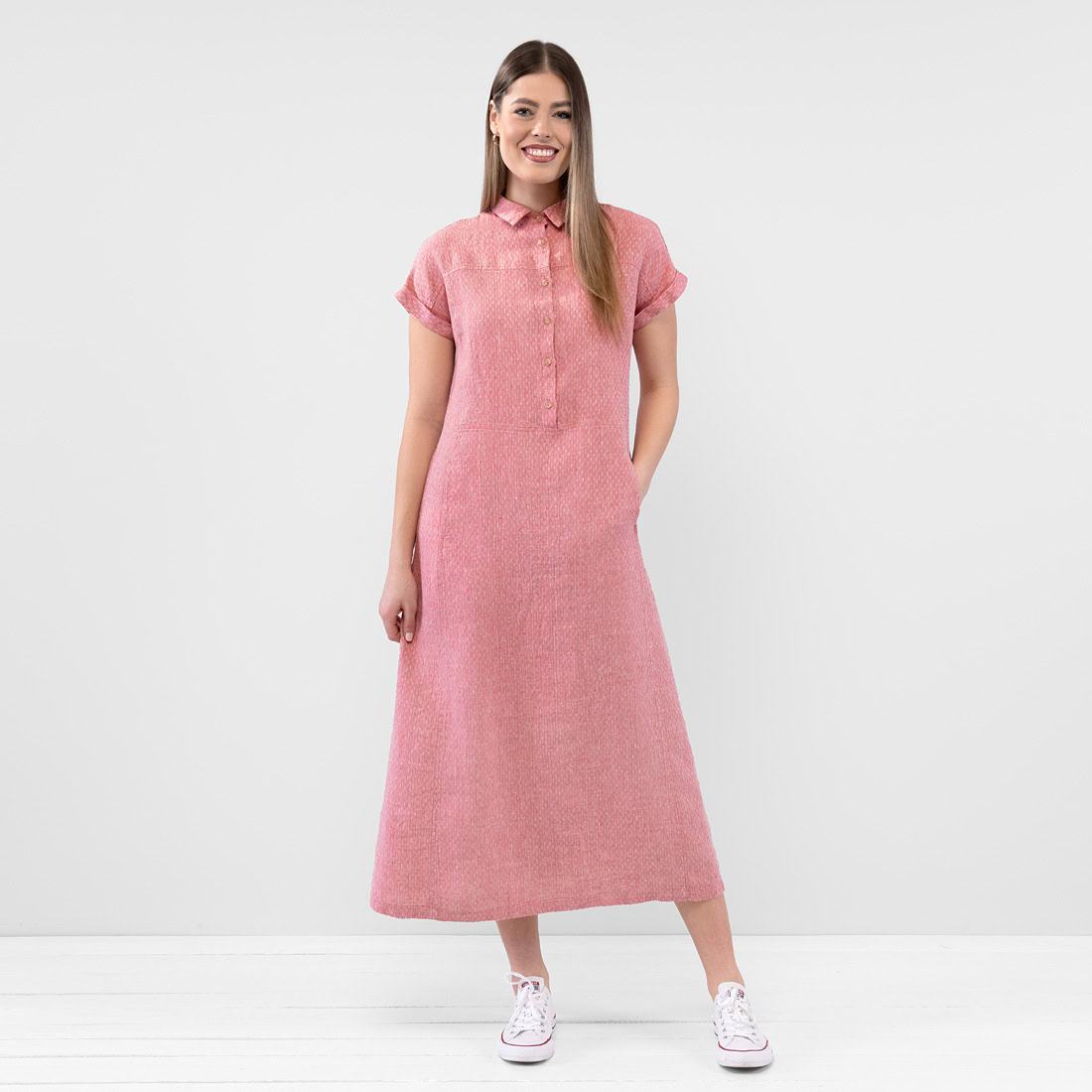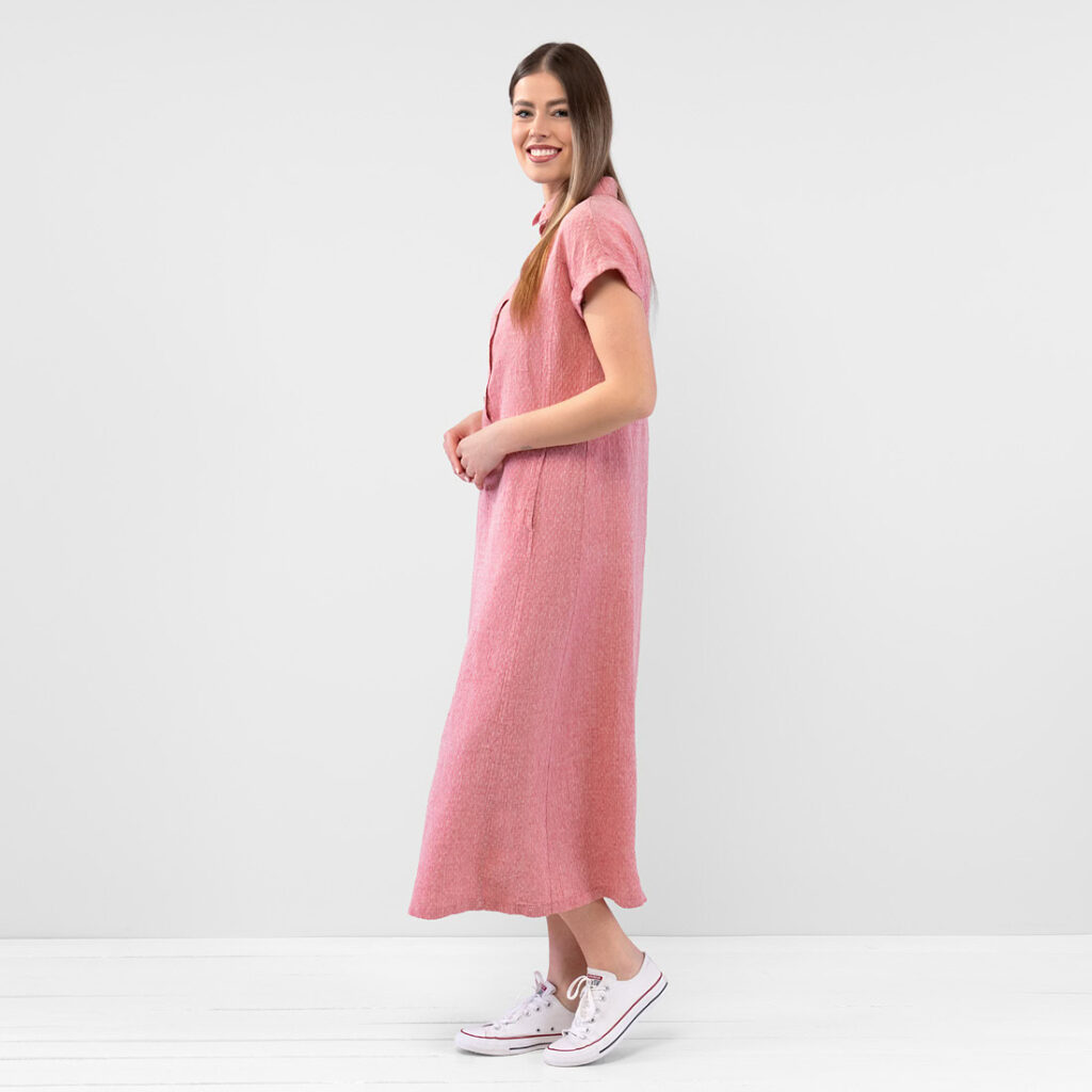 - Produktmodell: A-line silhuett, avslappet passform, maxi-lengde, korte ermer