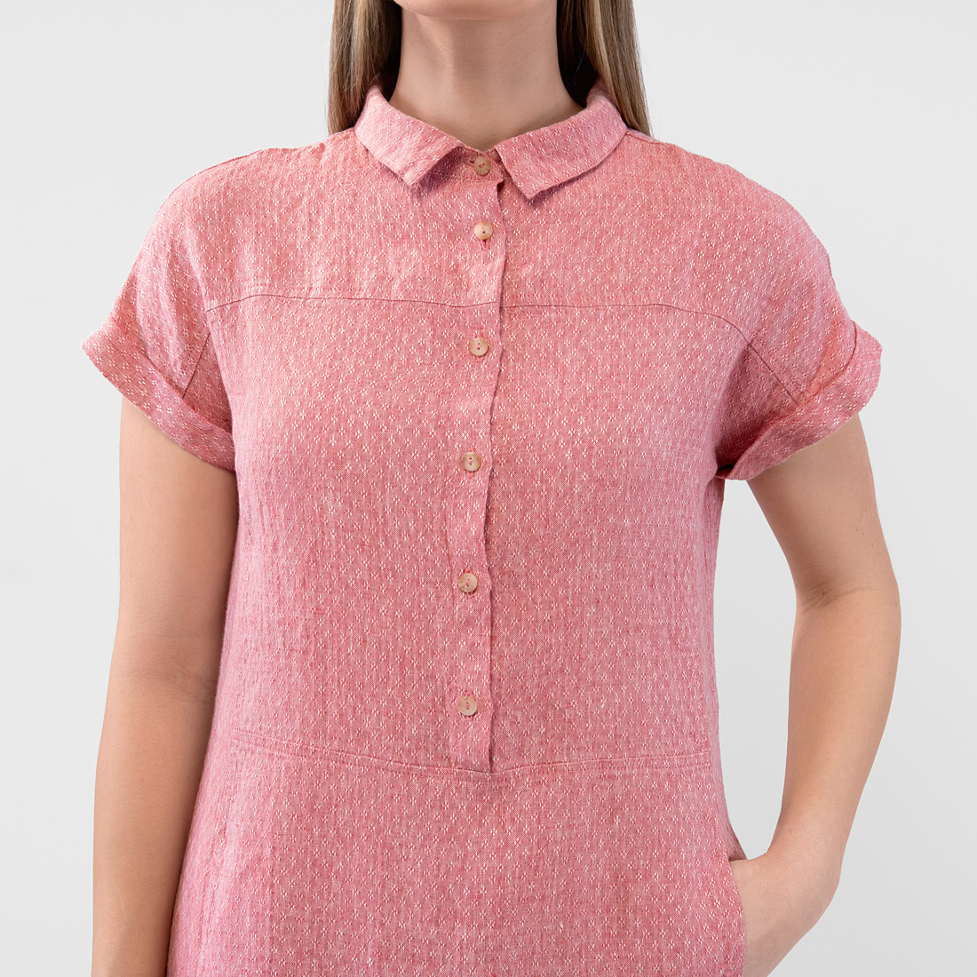 - Detaljer: klassisk skjortekrage med delvis knappestolpe, to sidelommer