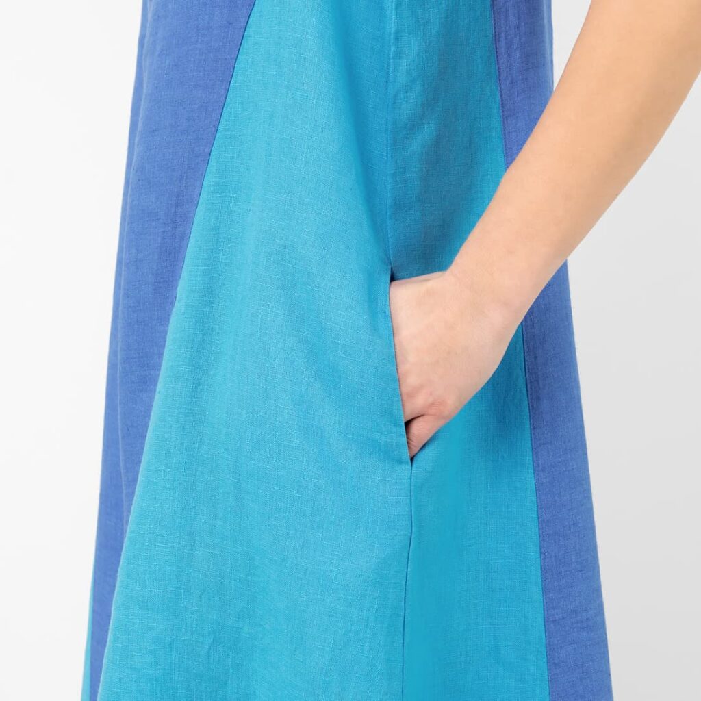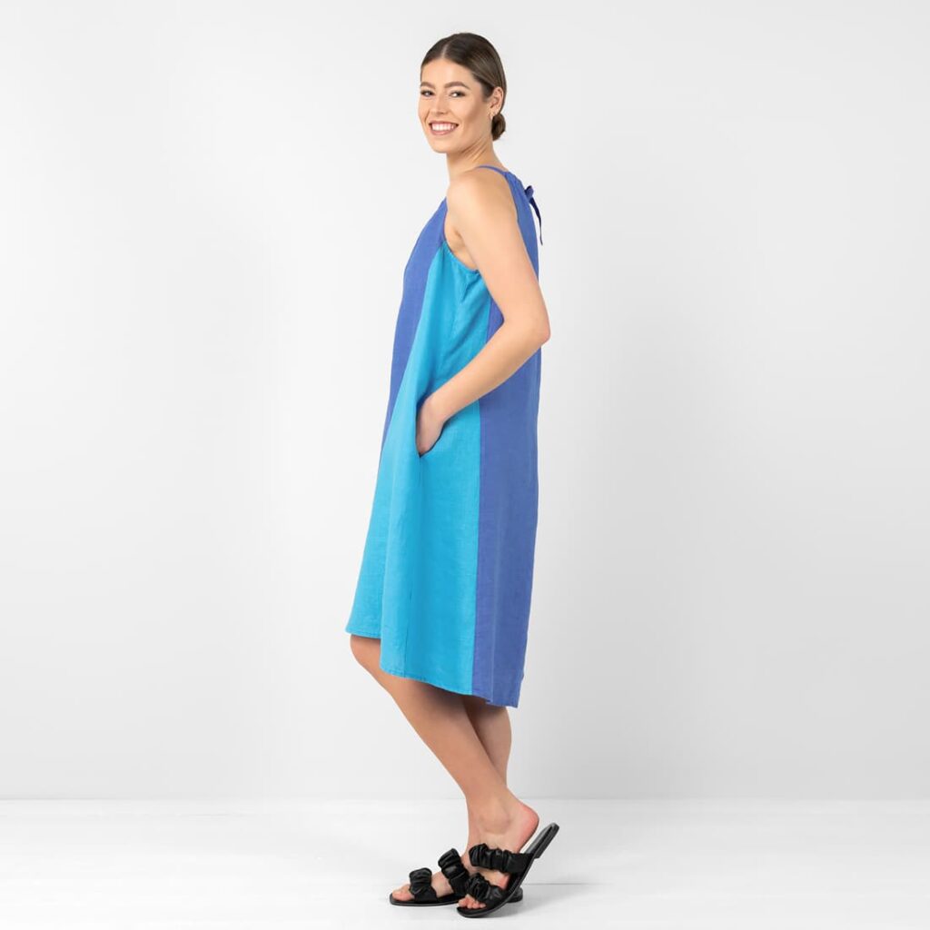- Produktmodell: A-linje silhuett, løs passform, knelang, ermeløs