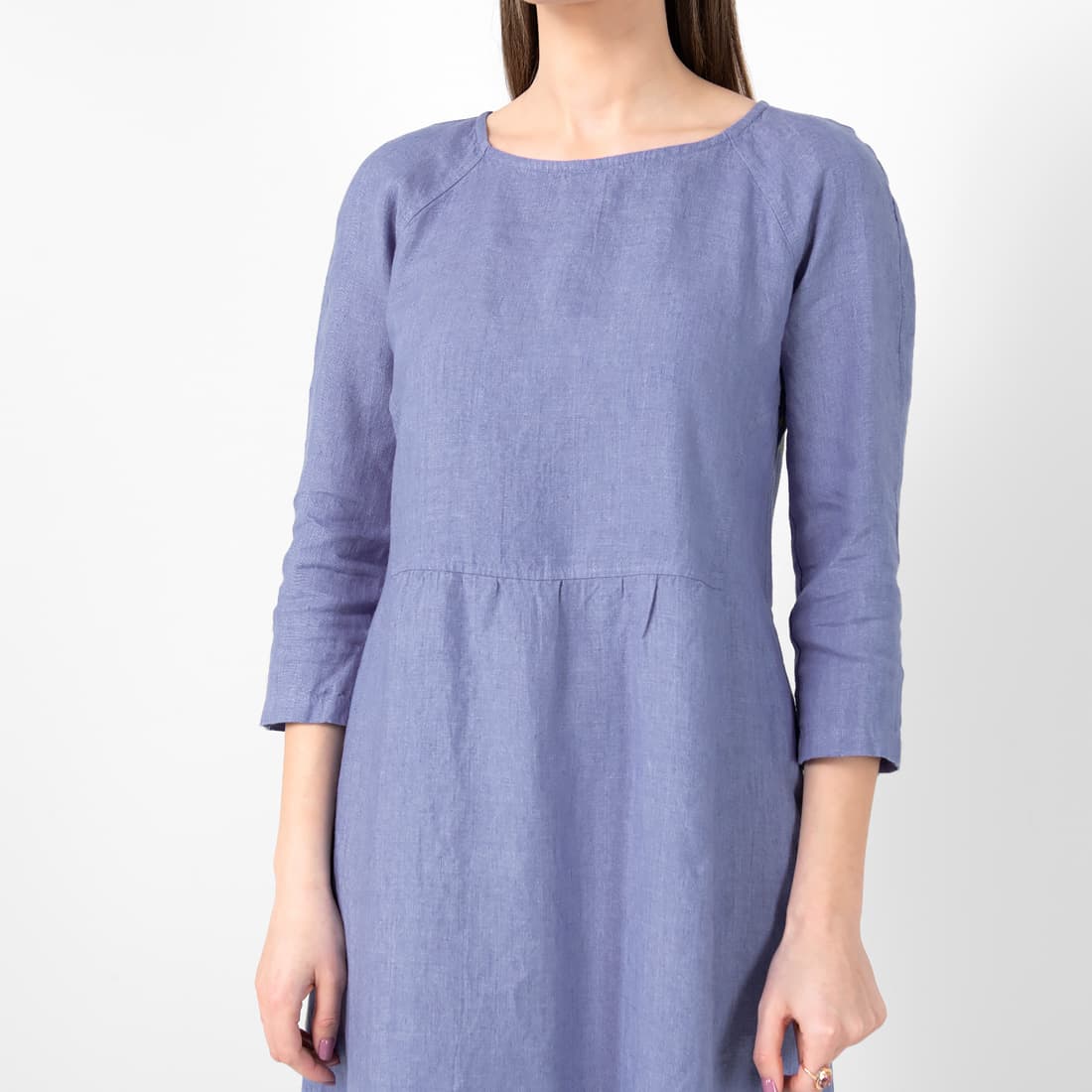 - Detaljer: rund halsringning, med lommer, lett rynking i midjen foran og bak, knappelukking bak