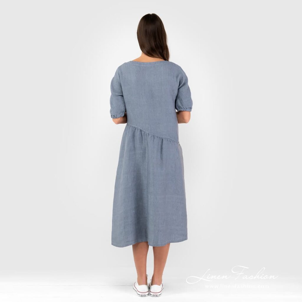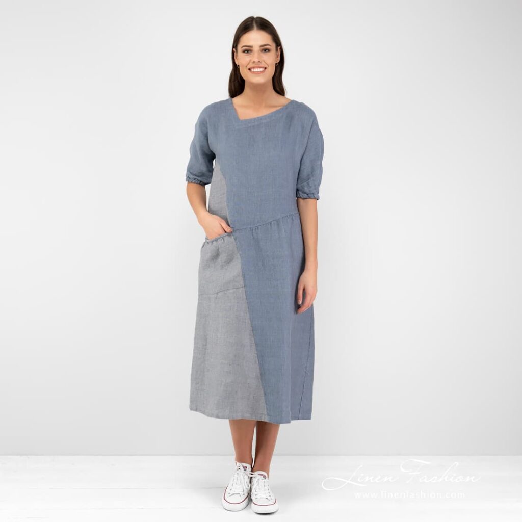 - Detaljer: asymmetrisk V-hals, med lomme på høyre side, små rynker rundt diagonal midje