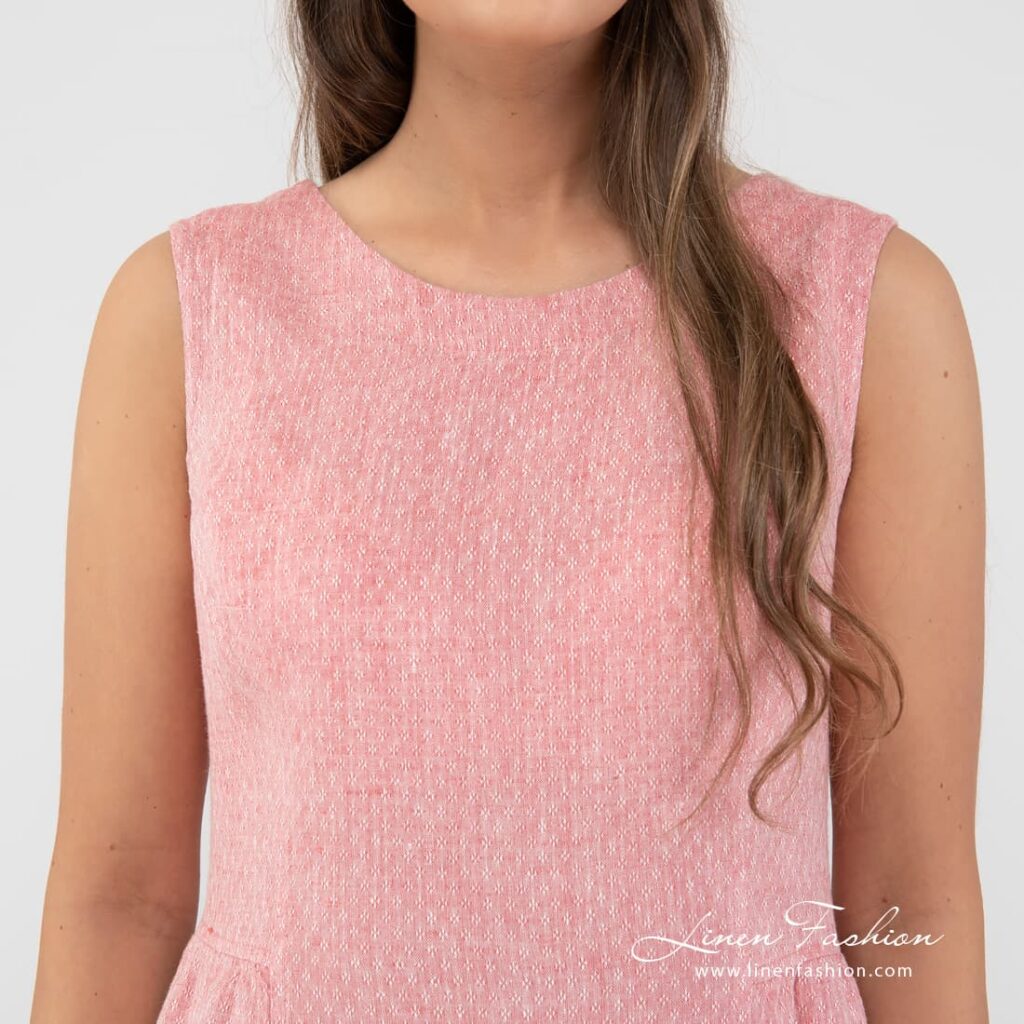 - Produktmodell: A-linje silhuett, lengde over kneet, ermeløs