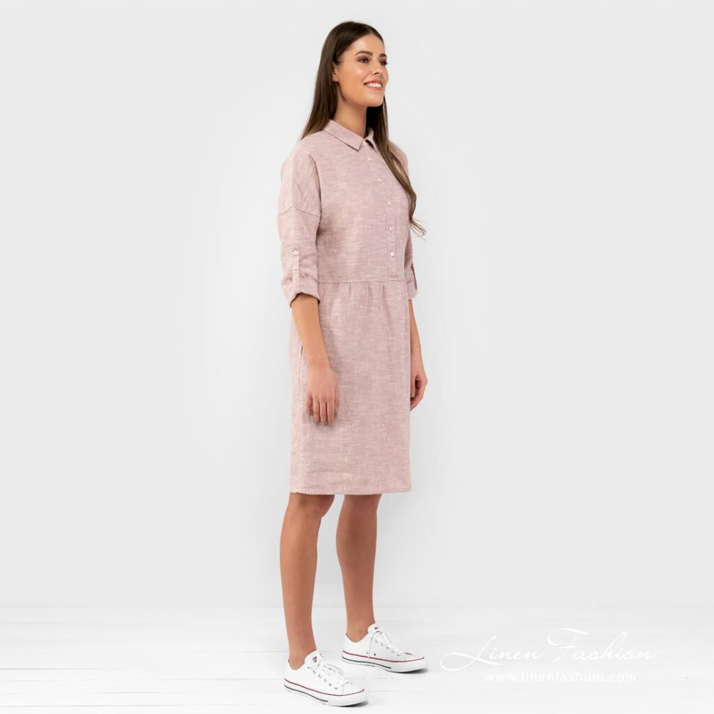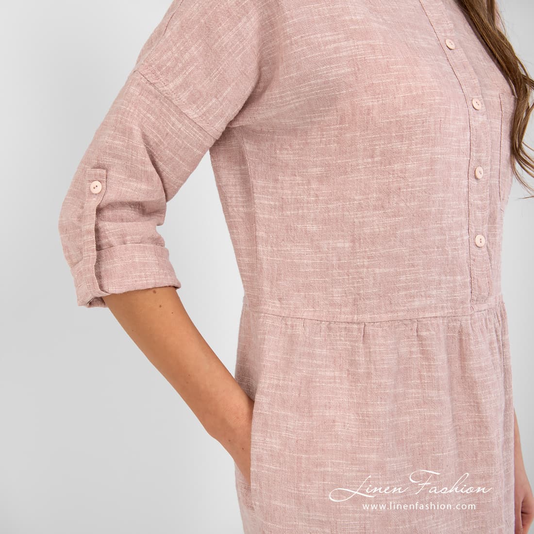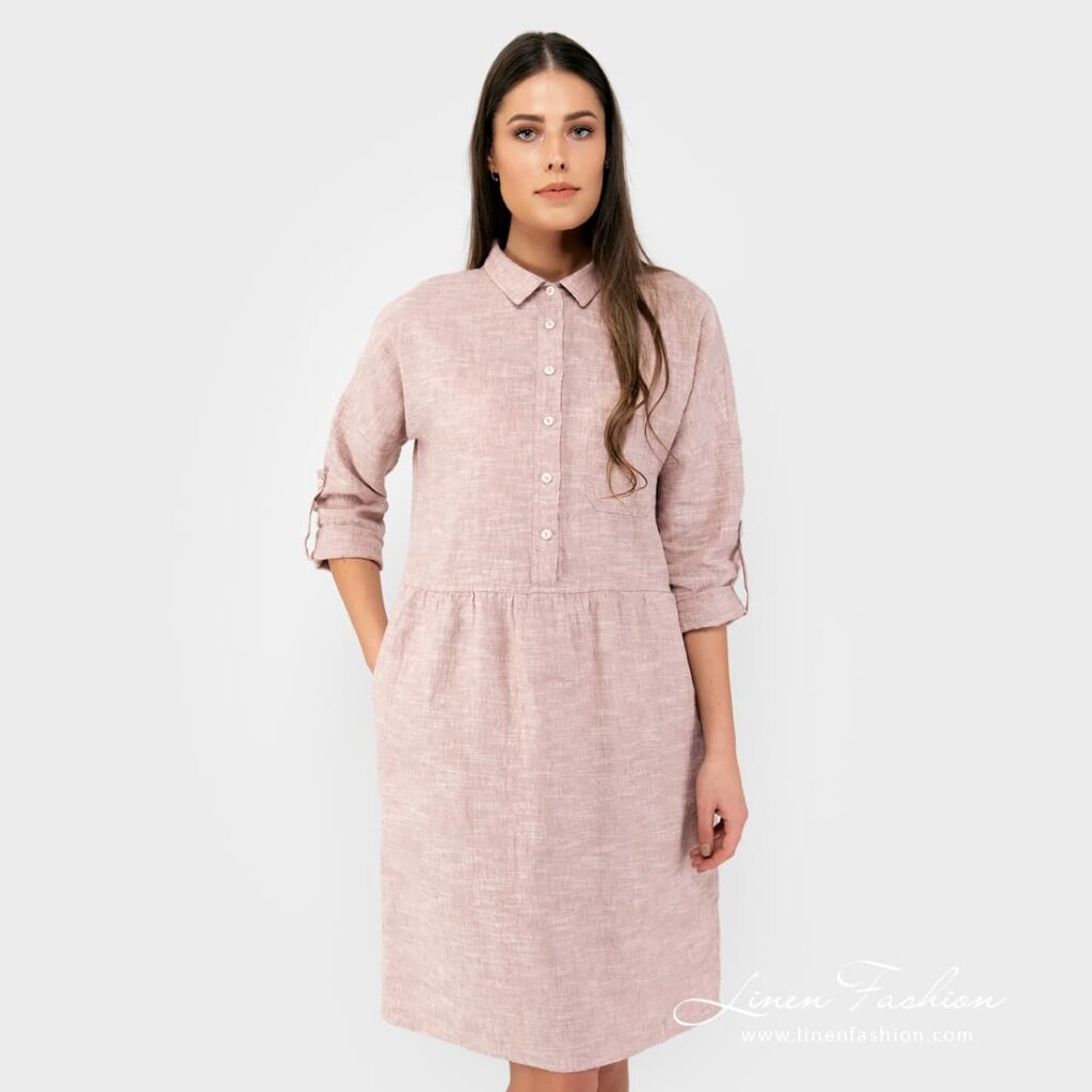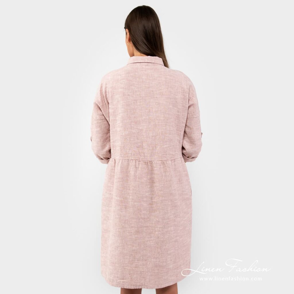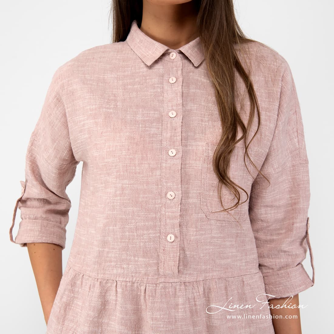 - Detaljer: klassisk skjortekrage, knappelukking, lomme på brystet, lommer på sidene, lett rynking i midjen
