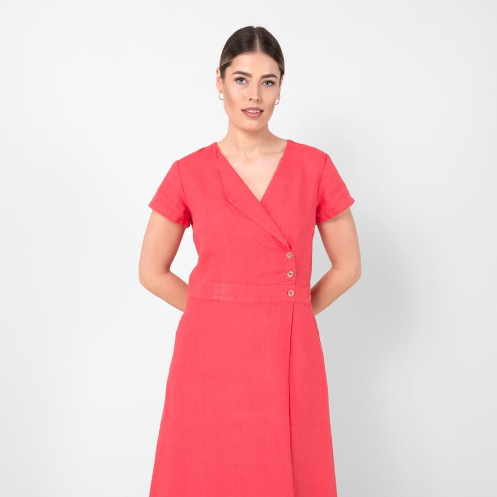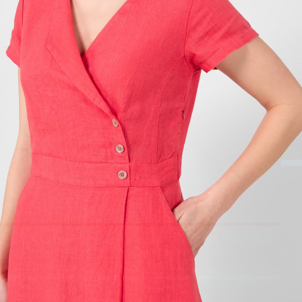 - Detaljer: V-hals med dekorativ fold foran, sidelommer, glidelåslukking i siden