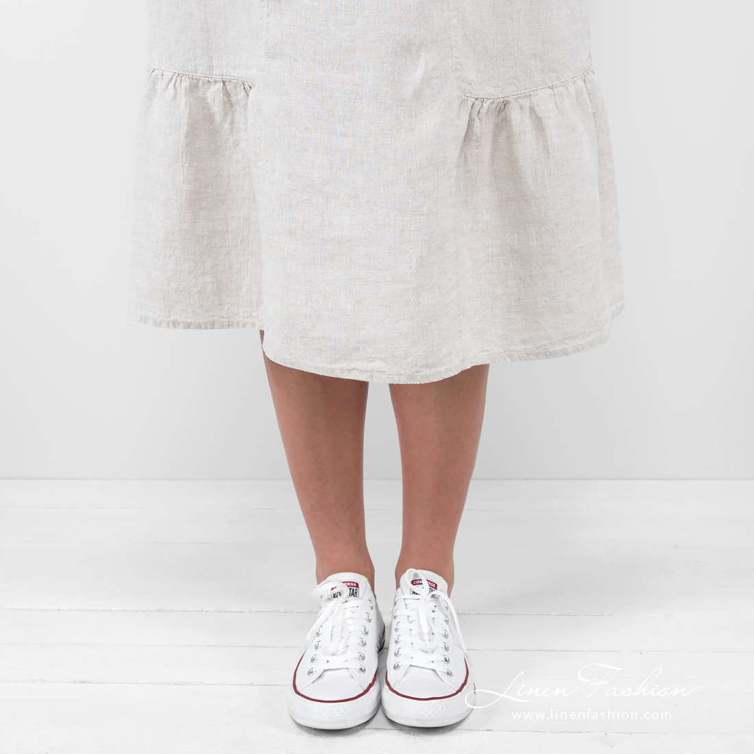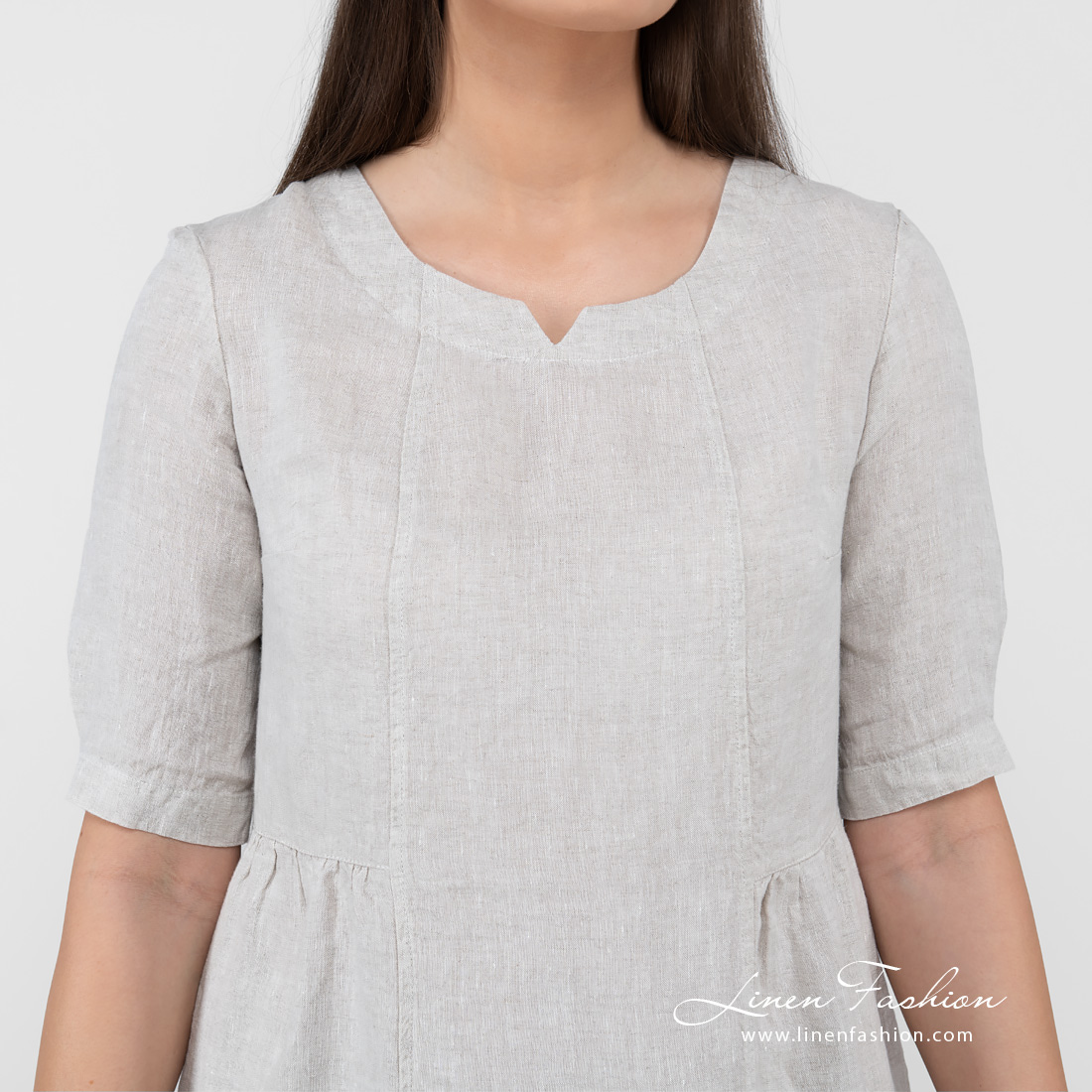 - Detaljer: rund halsutskjæring med liten v-utskjæring, volangkant nederst, lommer i sidene