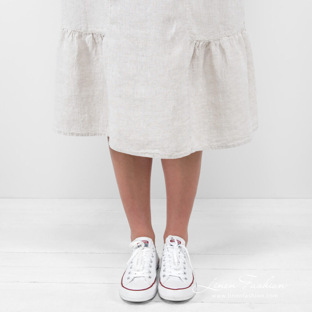 - Farge: blanding av hvitt og naturlig lin (ufarget, brungrått) fargede garn