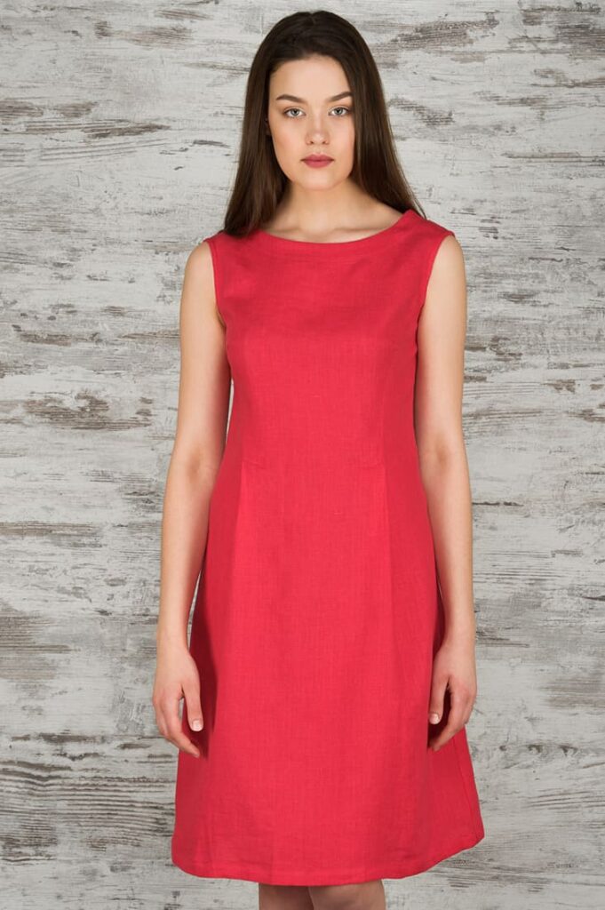- Produktmodell: A-line-silhuett, knelang, ermeløs