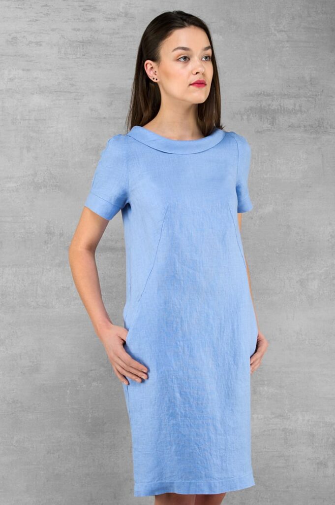 - Produktmodell: rett silhuett, knelang, korte ermer