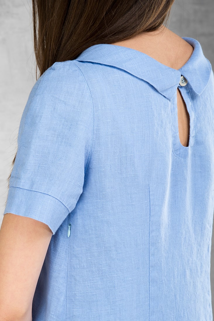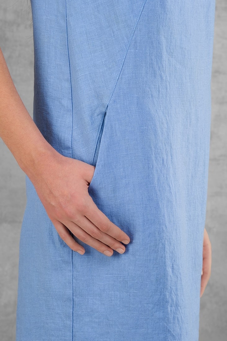 - Detaljer: rund halsutskjæring med krage, V-hals og dråpeformet utskjæring i ryggen, sidelommer, glidelåslukking
