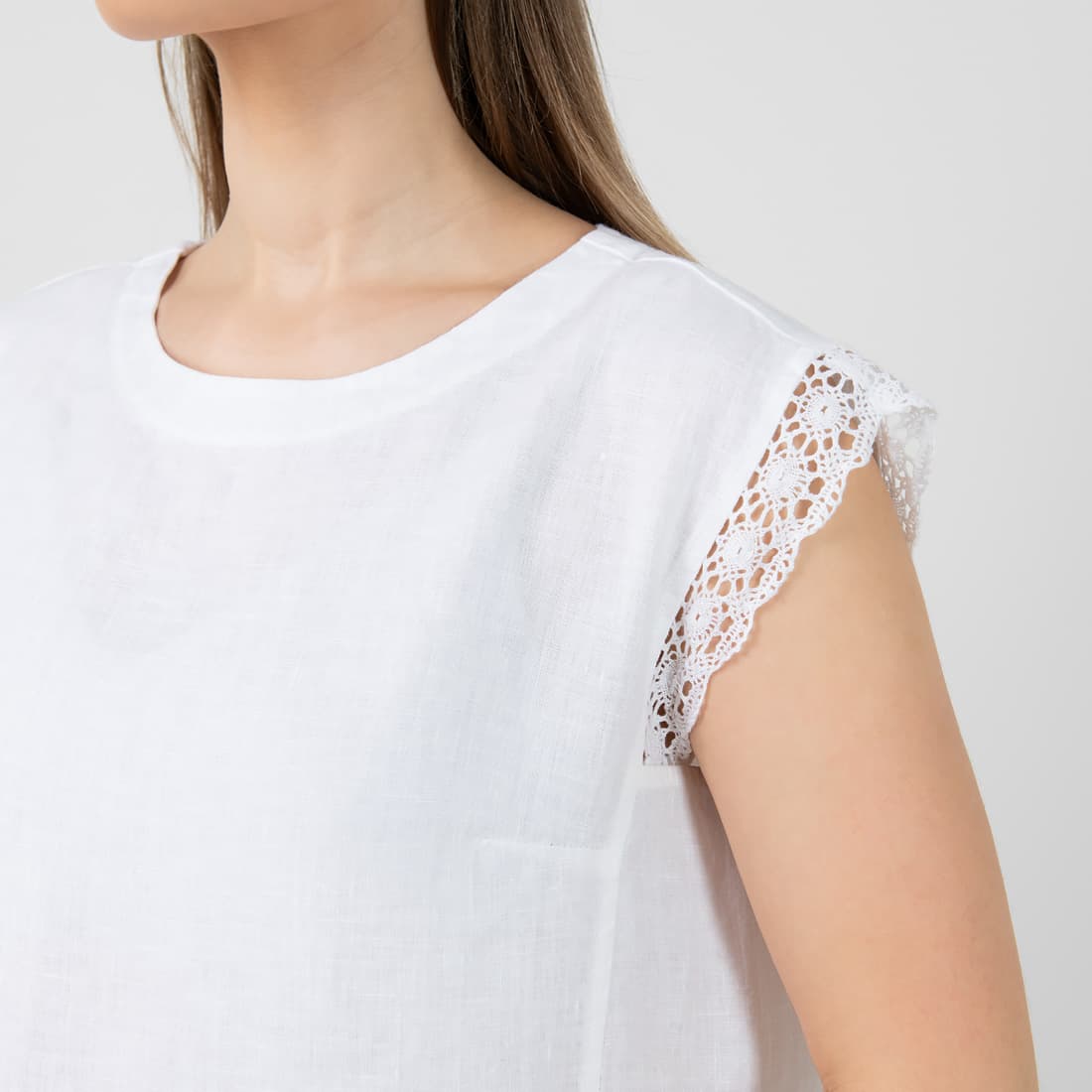 - Detaljer: rund halsåpning, sidelommer, knappelukking bak, blondedetaljer på ermer og nederst foran