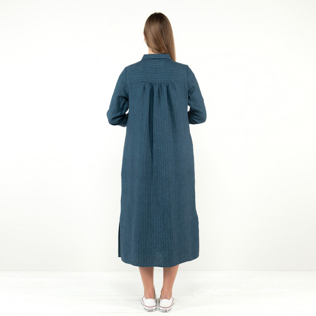 - Detaljer: vanlig skjortekrage, halv knappelukking foran, lange ermer med mansjetter, sidelommer, nederkant med kappe, lange splitter i sidene