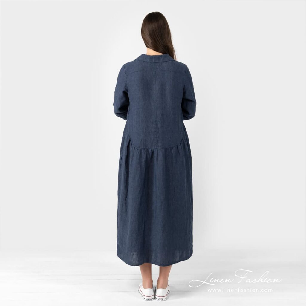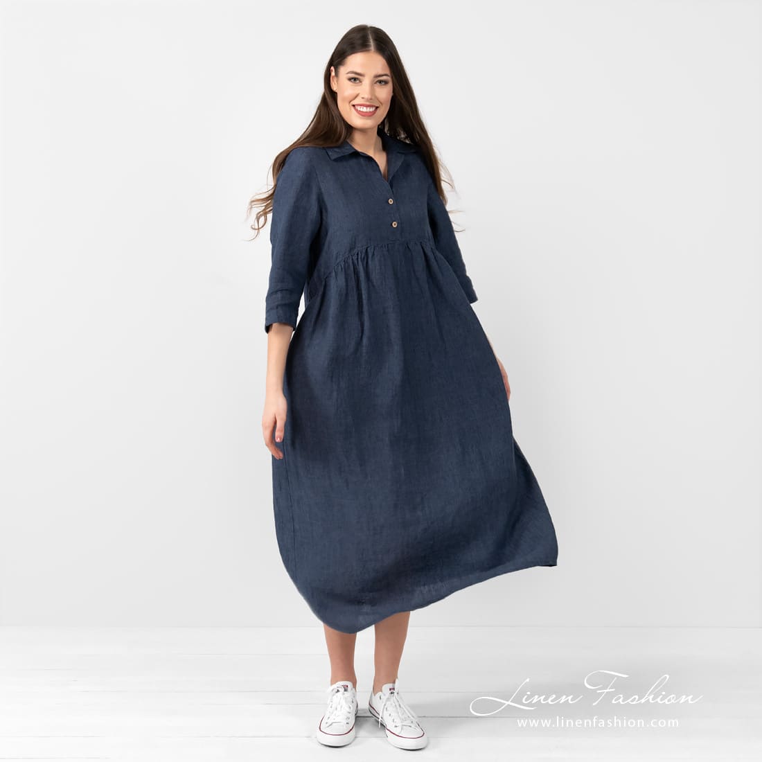 - Produktmodell: lett A-linje silhuett, løs passform, midi-lengde, 3/4 ermer