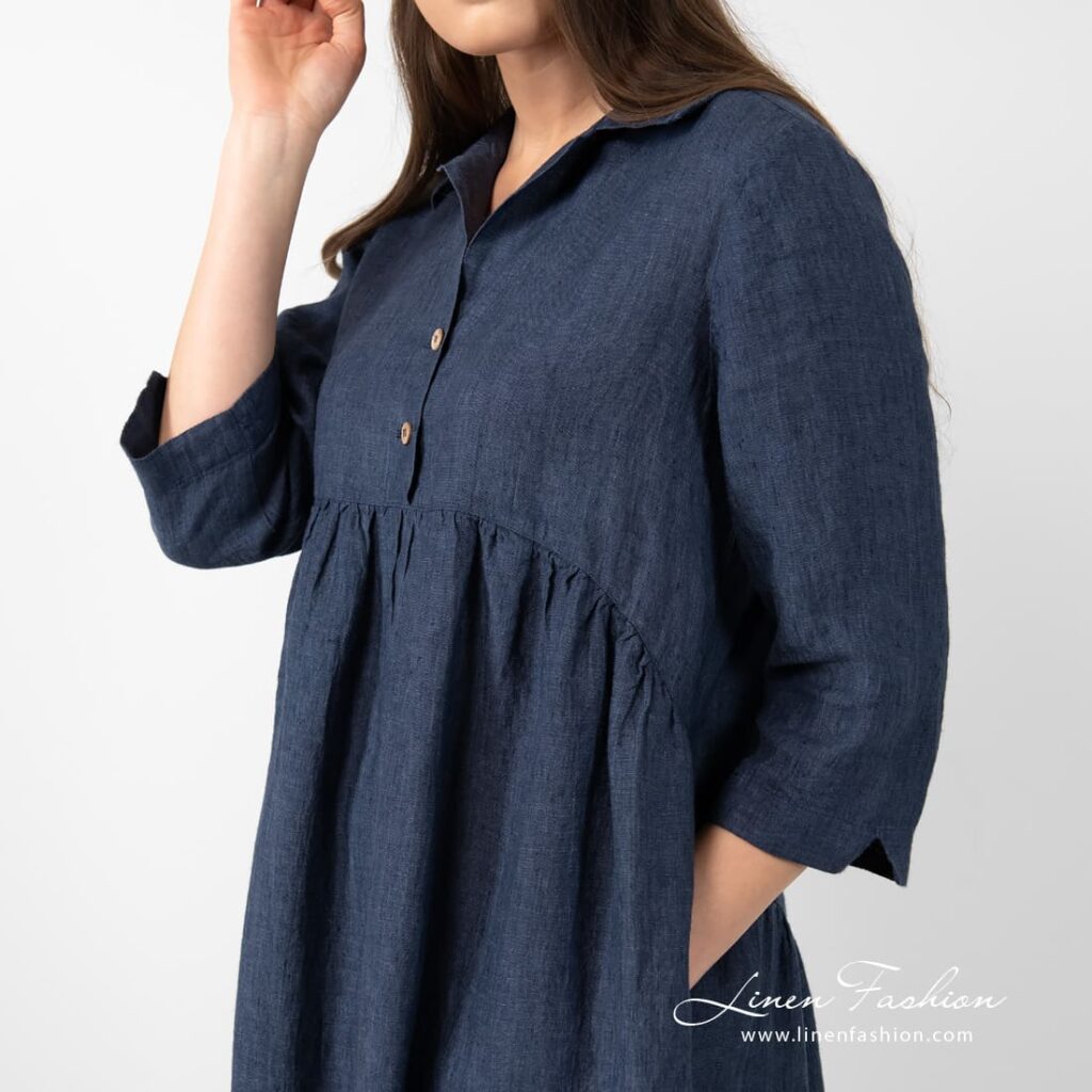 - Detaljer: V-hals, knapper foran, rynket under brystet, sidelommer