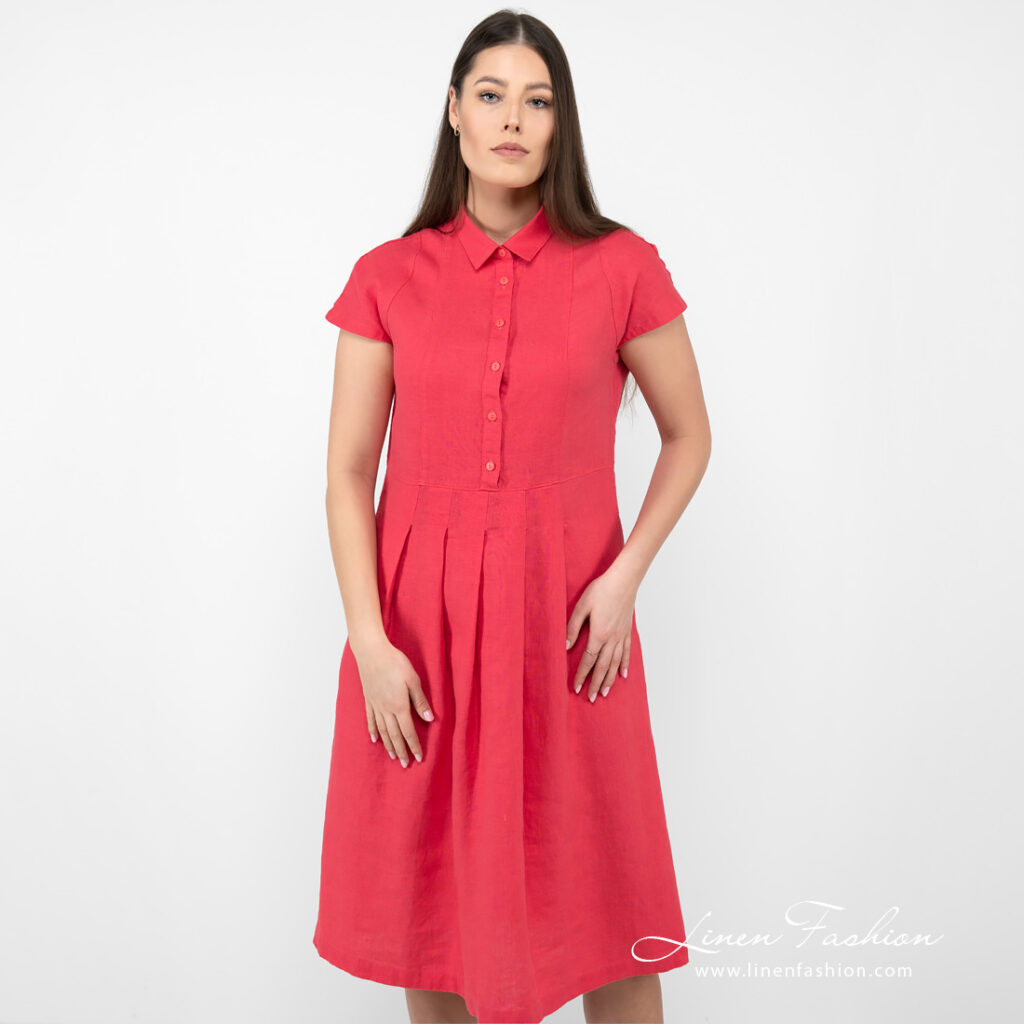 - Produktmodell: løs A-linje-silhuett, lengde under kneet, korte ermer