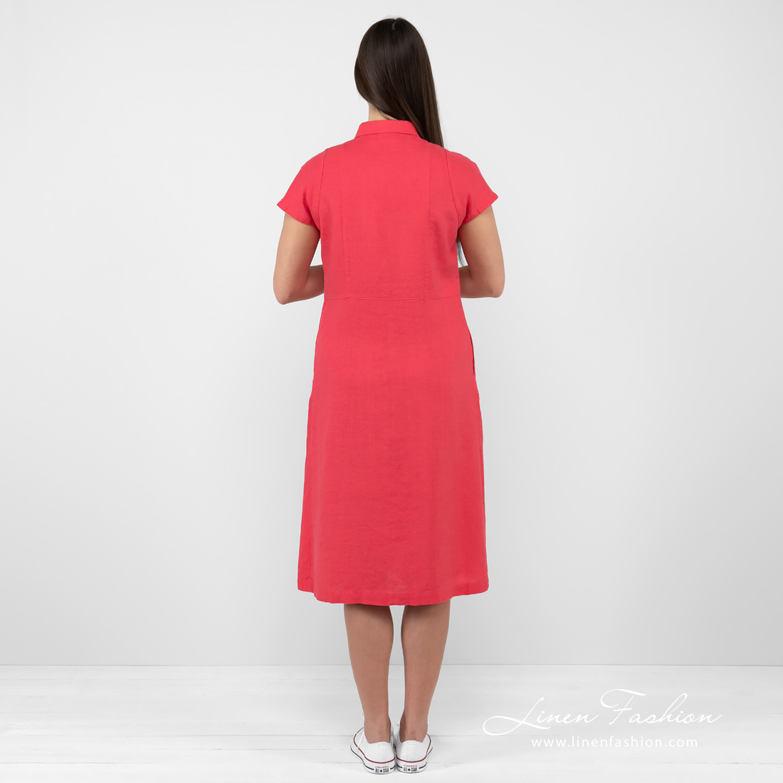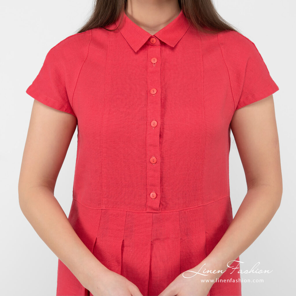 - Detaljer: med legg foran, klassisk skjortekrage med halv knappelukking, lommer i sidene