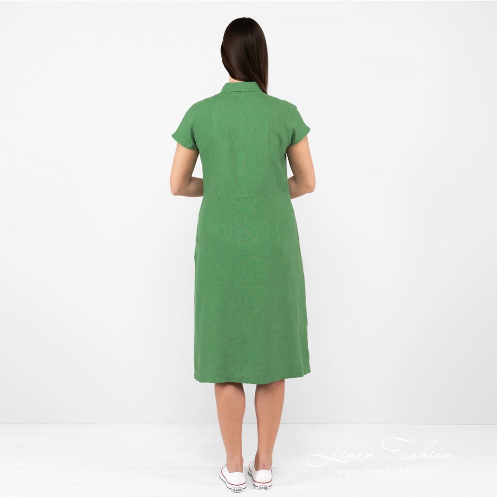 - Produktmodell: løs A-linje-silhuett, lengde under kneet, korte ermer