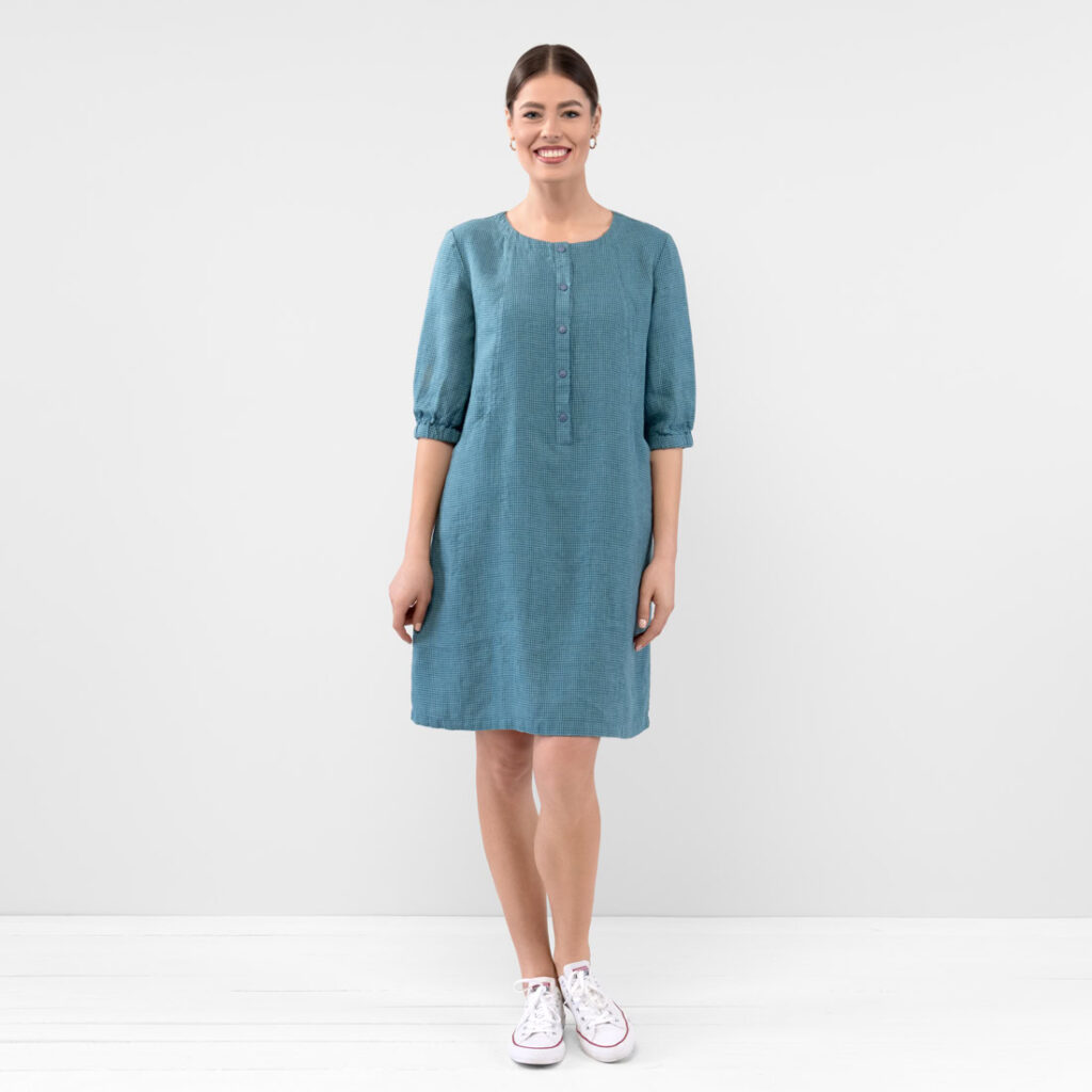 - Produktmodell: rett silhuett, avslappet passform, lengde over kneet, albuelange ermer