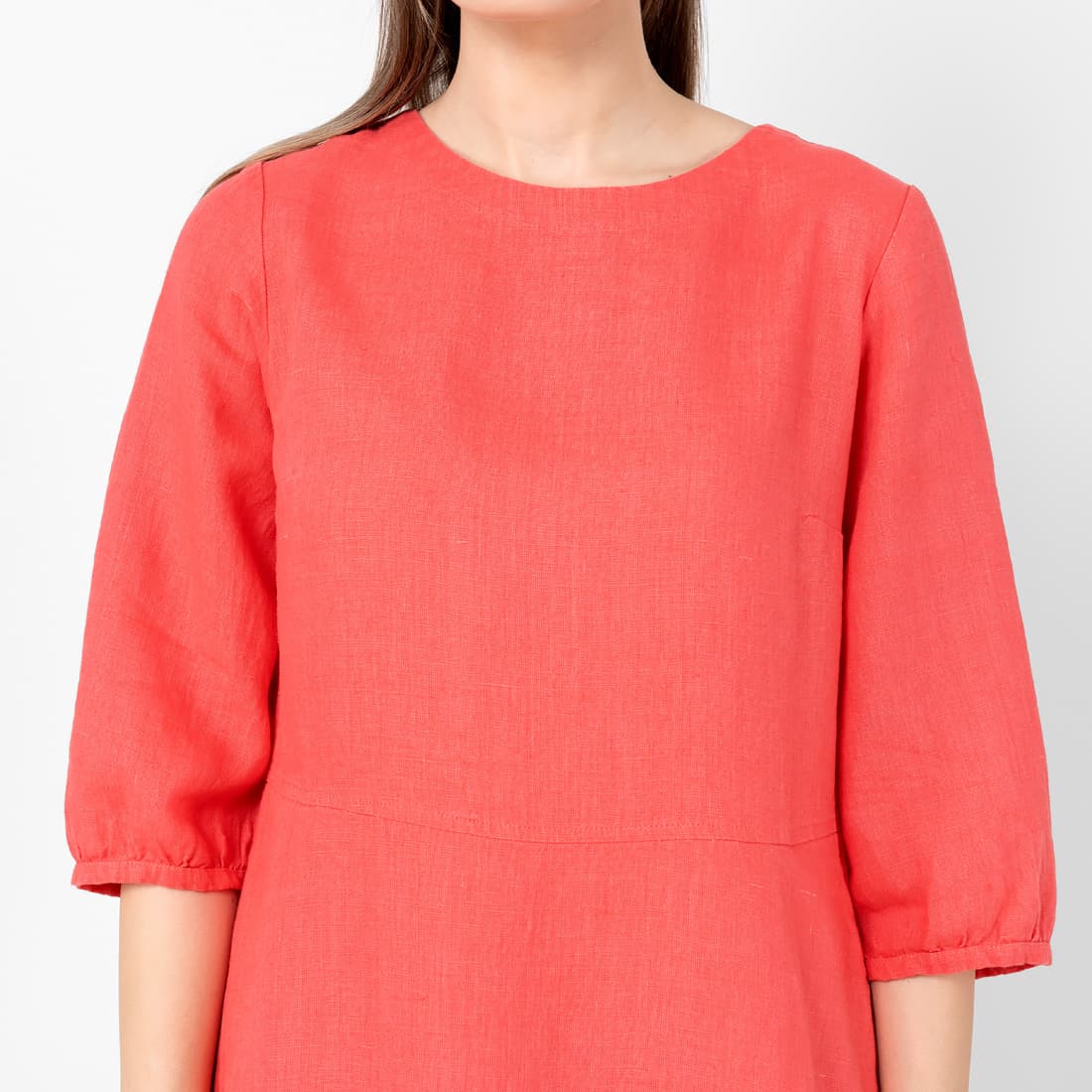 - Produktmodell: løs A-linje silhuett, midi-lengde, 3/4 lange ermer
