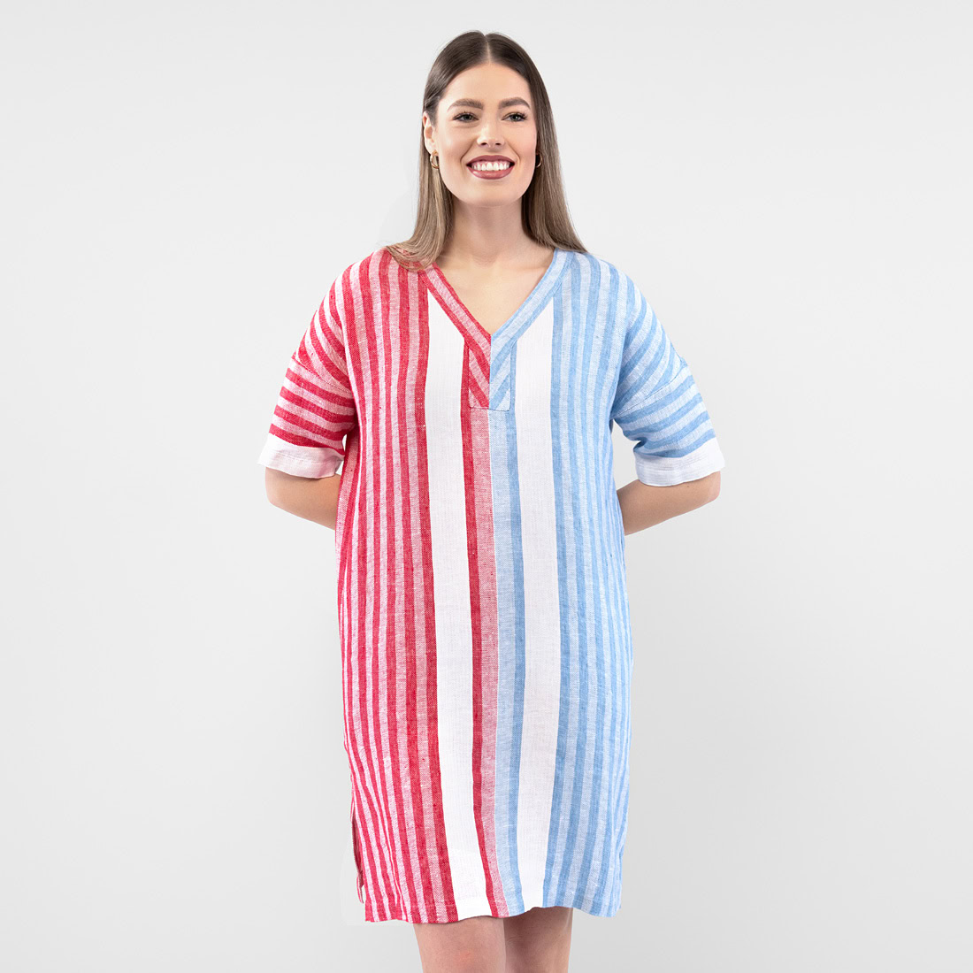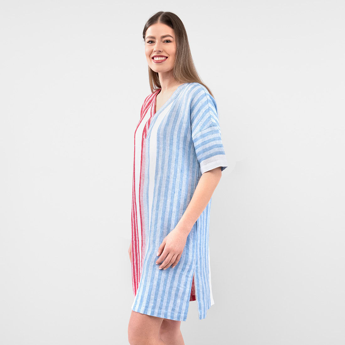 - Produktmodell: rett silhuett, avslappet passform, lengde over kneet, albuelange ermer