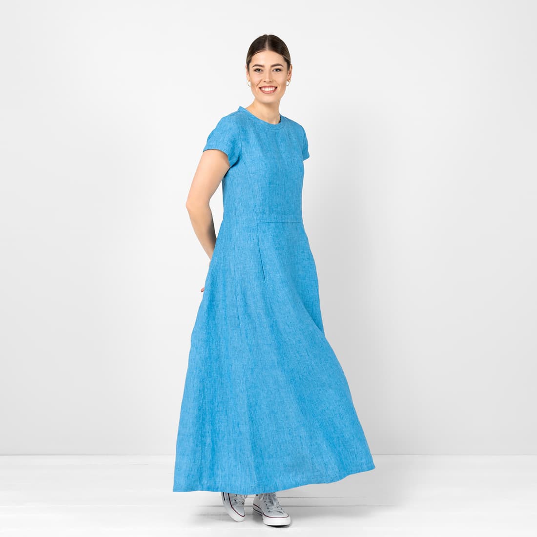 - Produktmodell: lang A-linje-silhuett, maksi-lengde, korte ermer