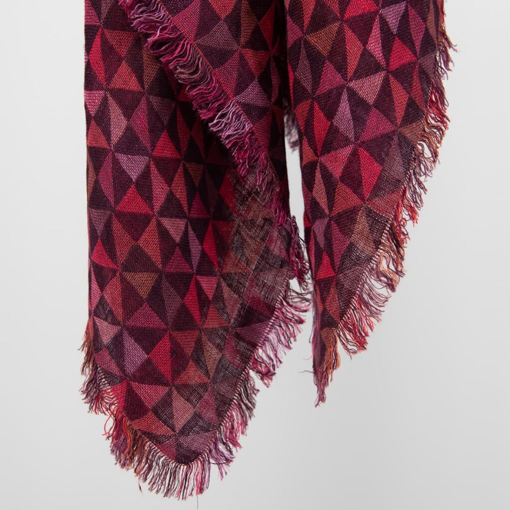 - Mønster: dobbeltlags jacquard i et geometrisk trekantmønster