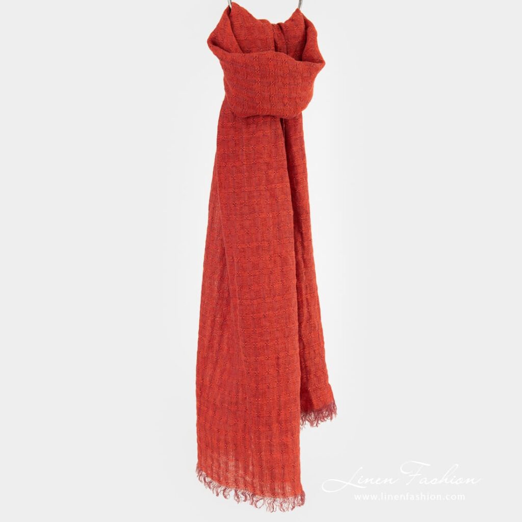 - Farge: blanding av flammerøde og kastanjebrune fargede garn
