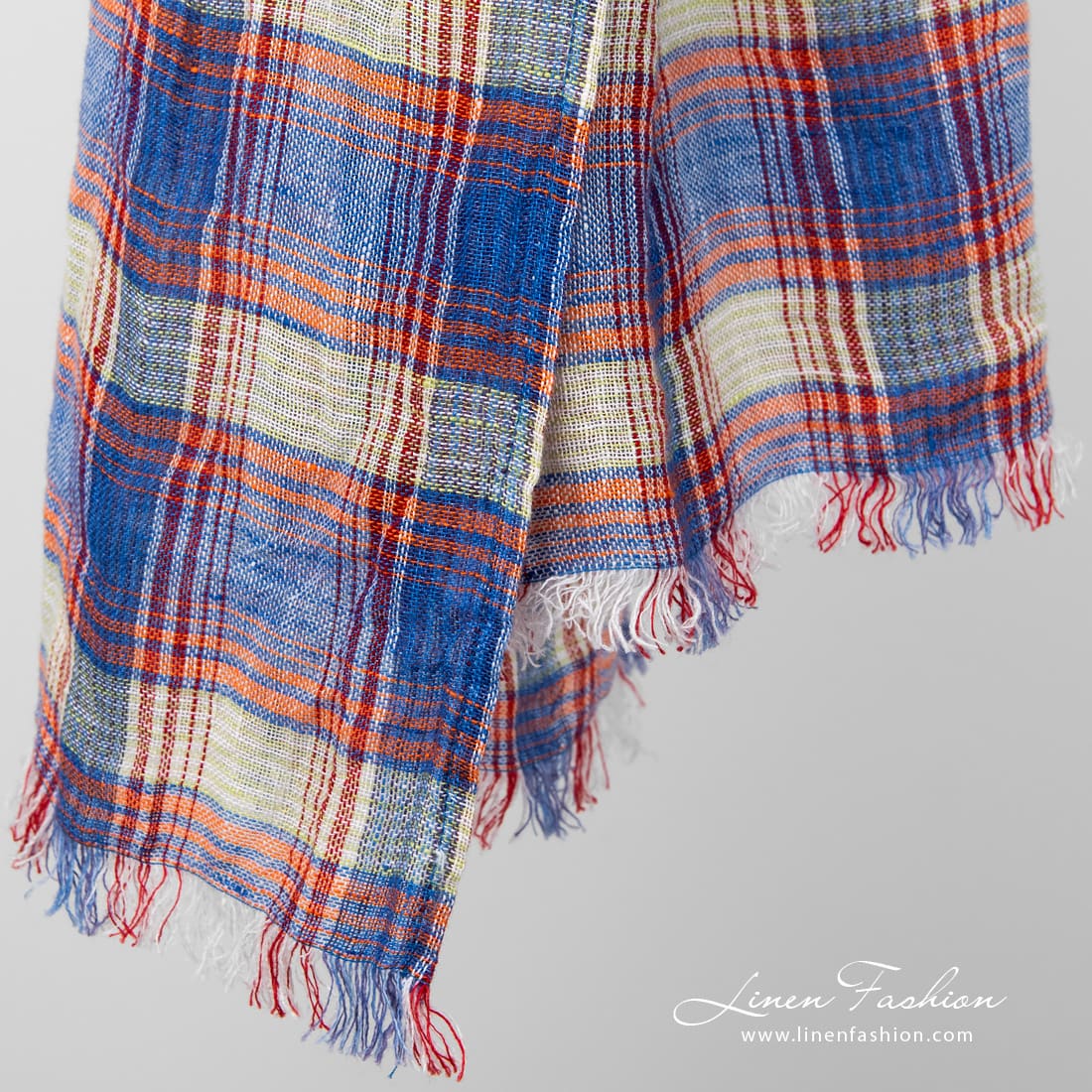 - Farge: blanding av kornblomstblå, levende oransje, frisk lime, off-white (gulhvit), rød og fiolett indigo fargede garn