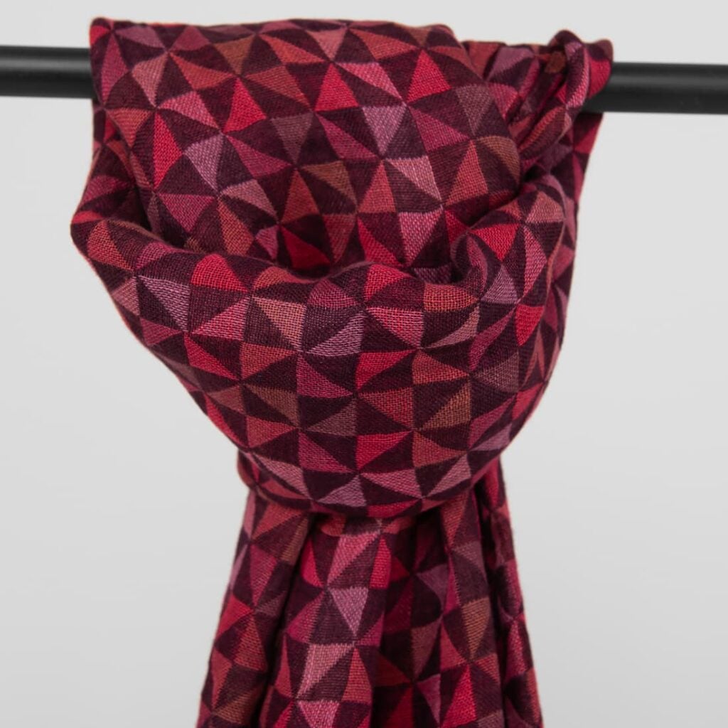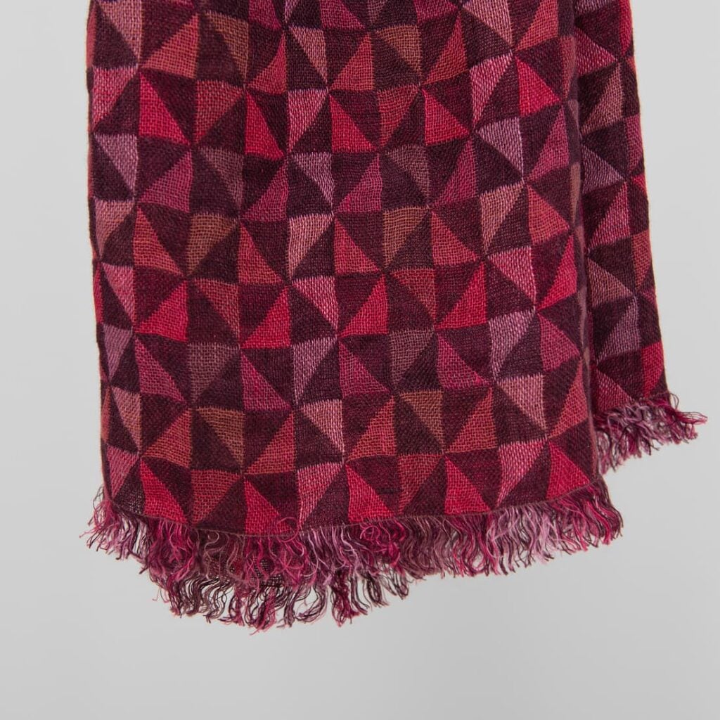 - Mønster: dobbeltlags jacquard i et geometrisk trekantmønster