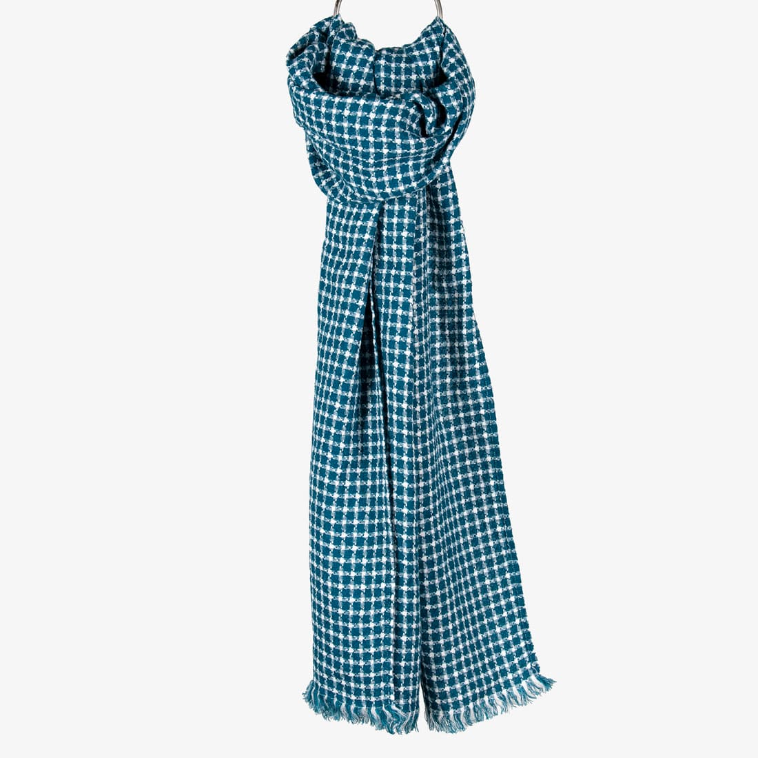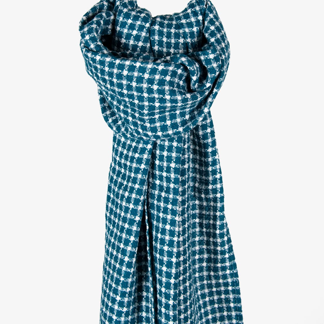 - Farge: blanding av mørk turkis og off-white (gulhvit) fargede garn