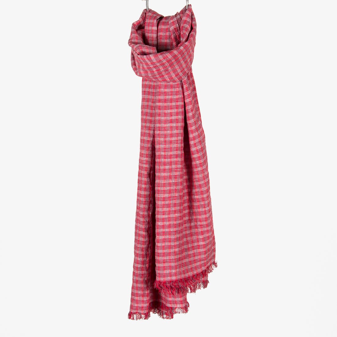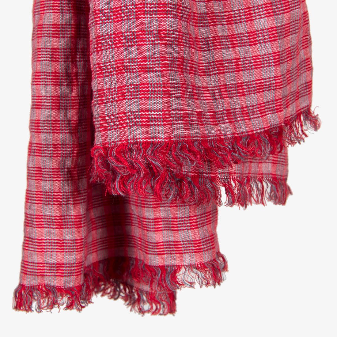 - Farge: blanding av skarlagensrød, off-white og mørk metallgrå fargede garn