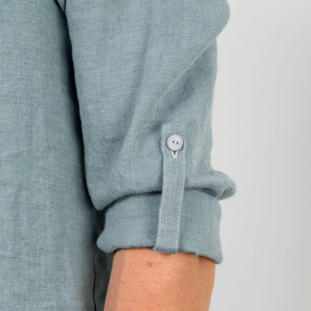 - Detaljer: ståkrage, halv knappestolpe foran