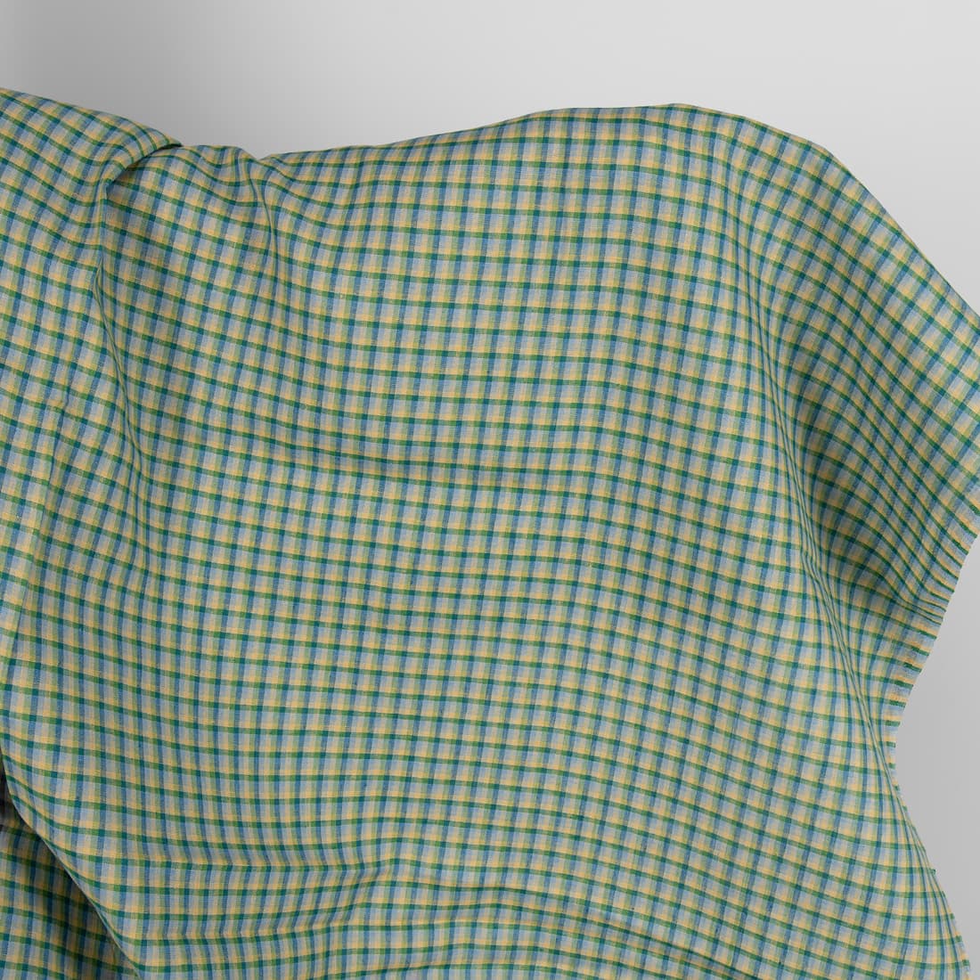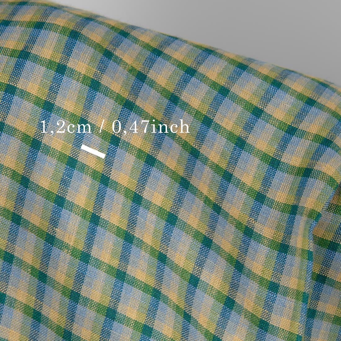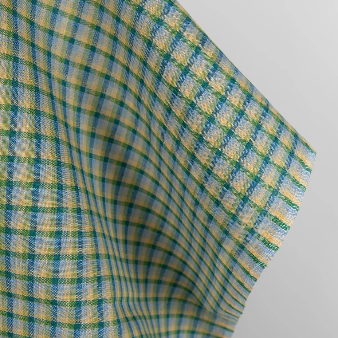 • Linstoff blå-grønn-gul-grå rutete