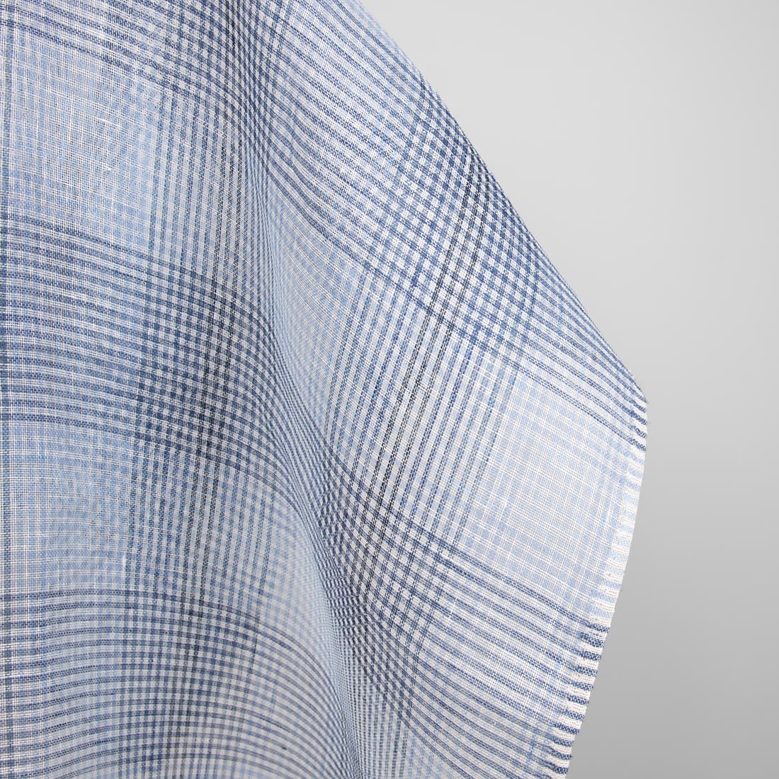 • Linstoff blå rutete gjennomsiktig, løstvevd, lett