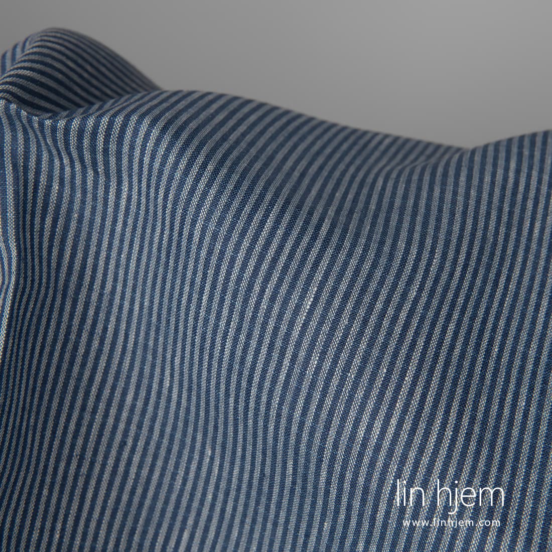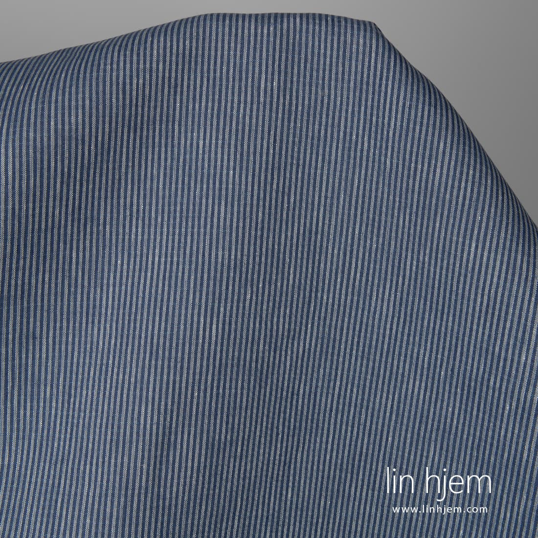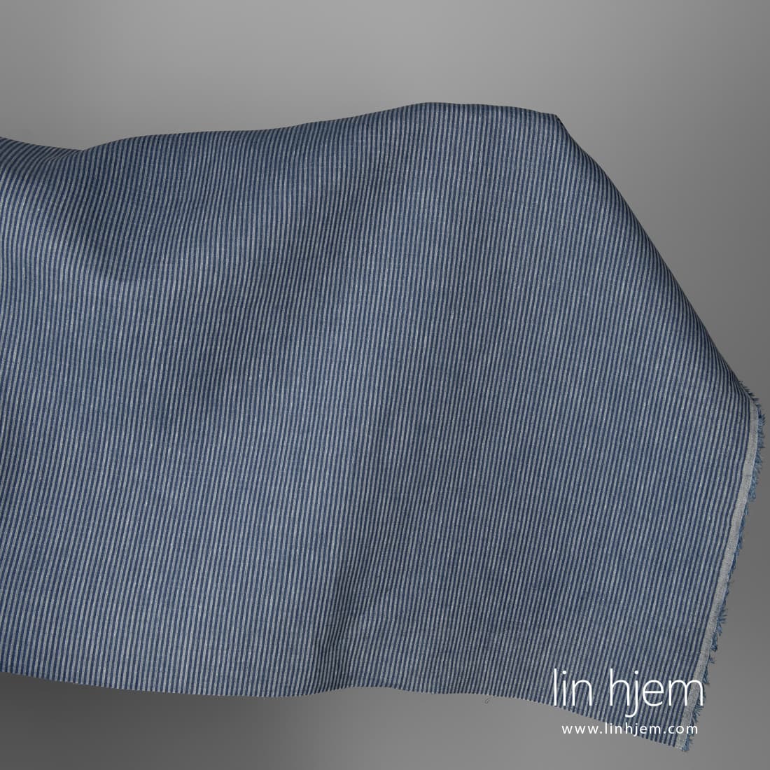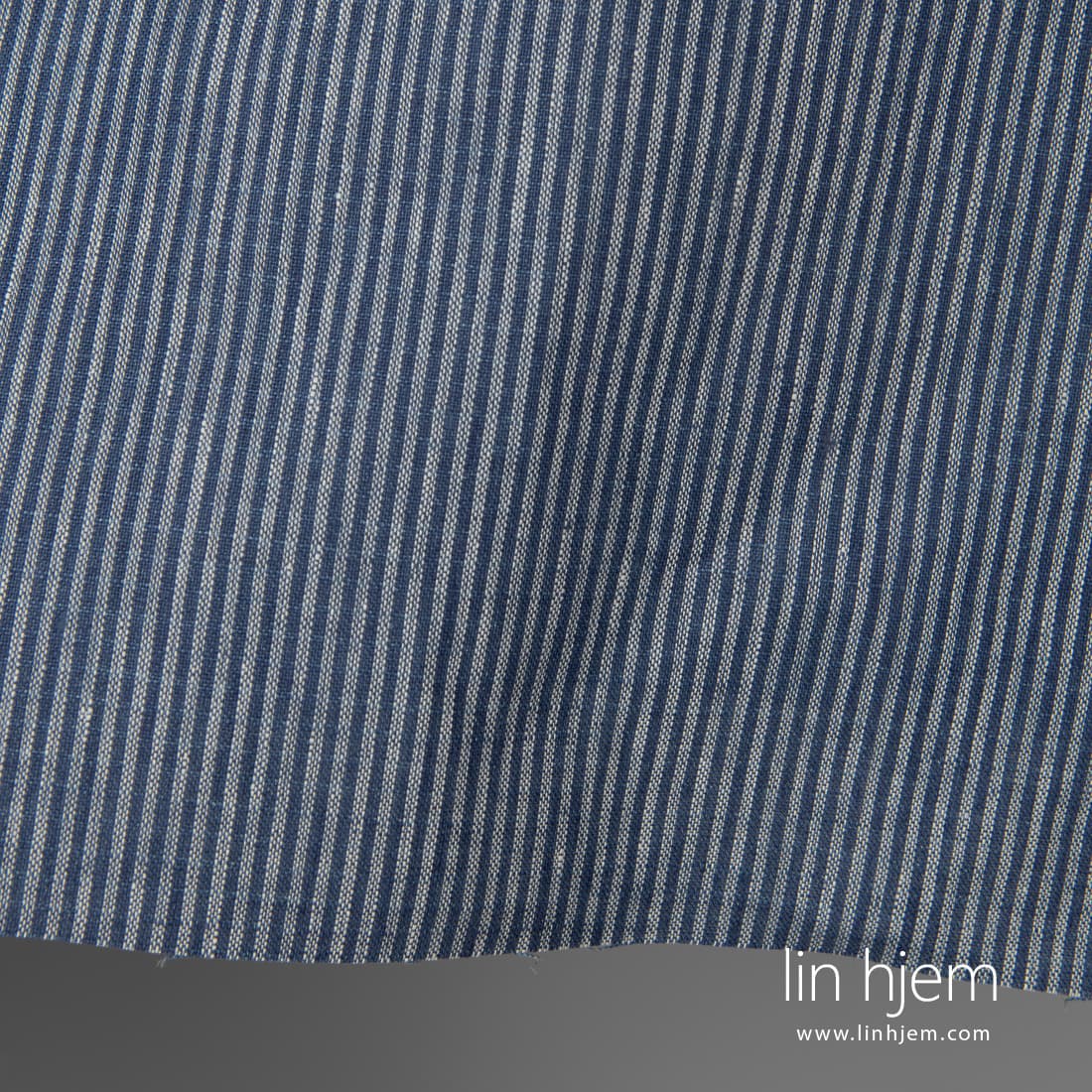 • Linstoff stripet vevd av mørkeblått, blått og hvitt garn