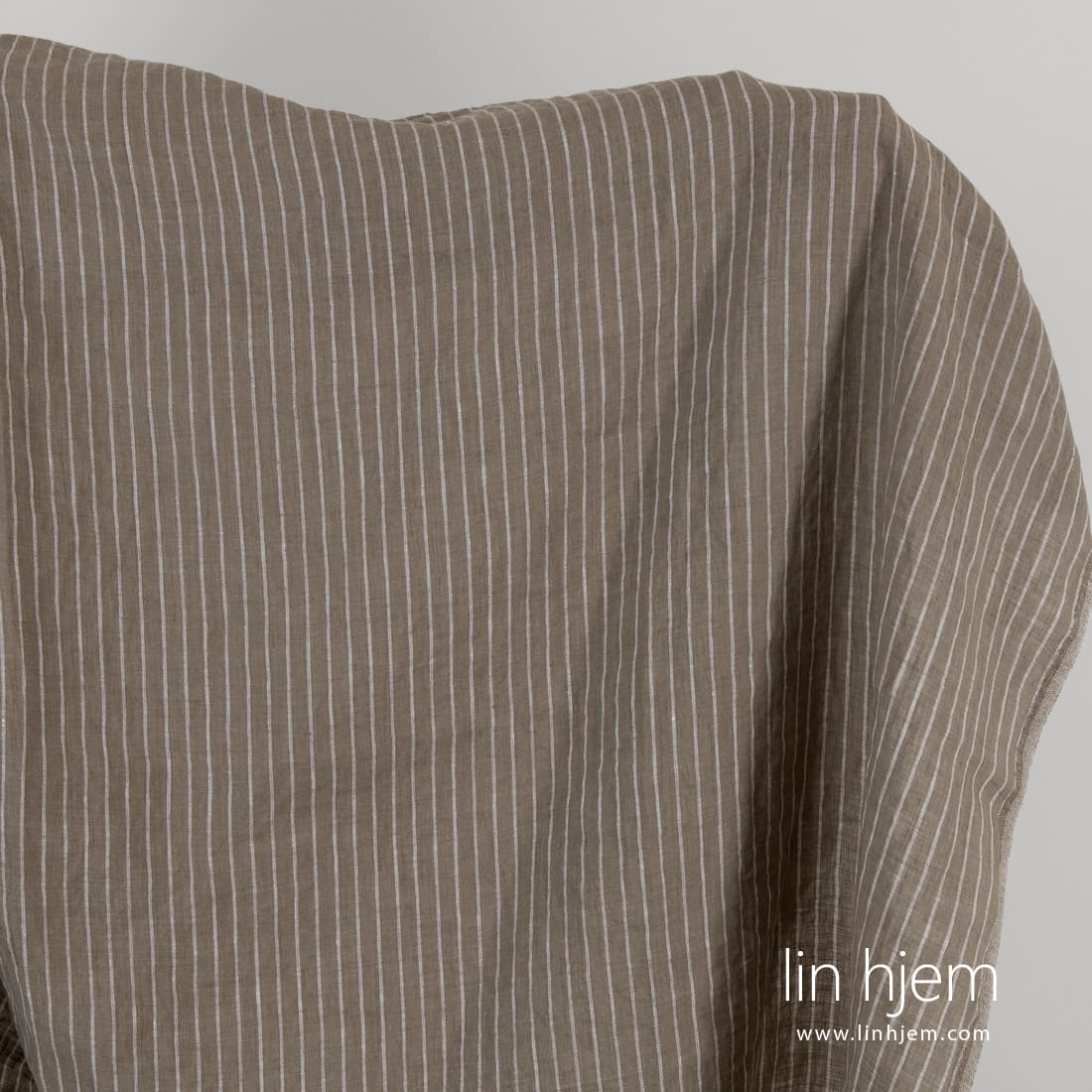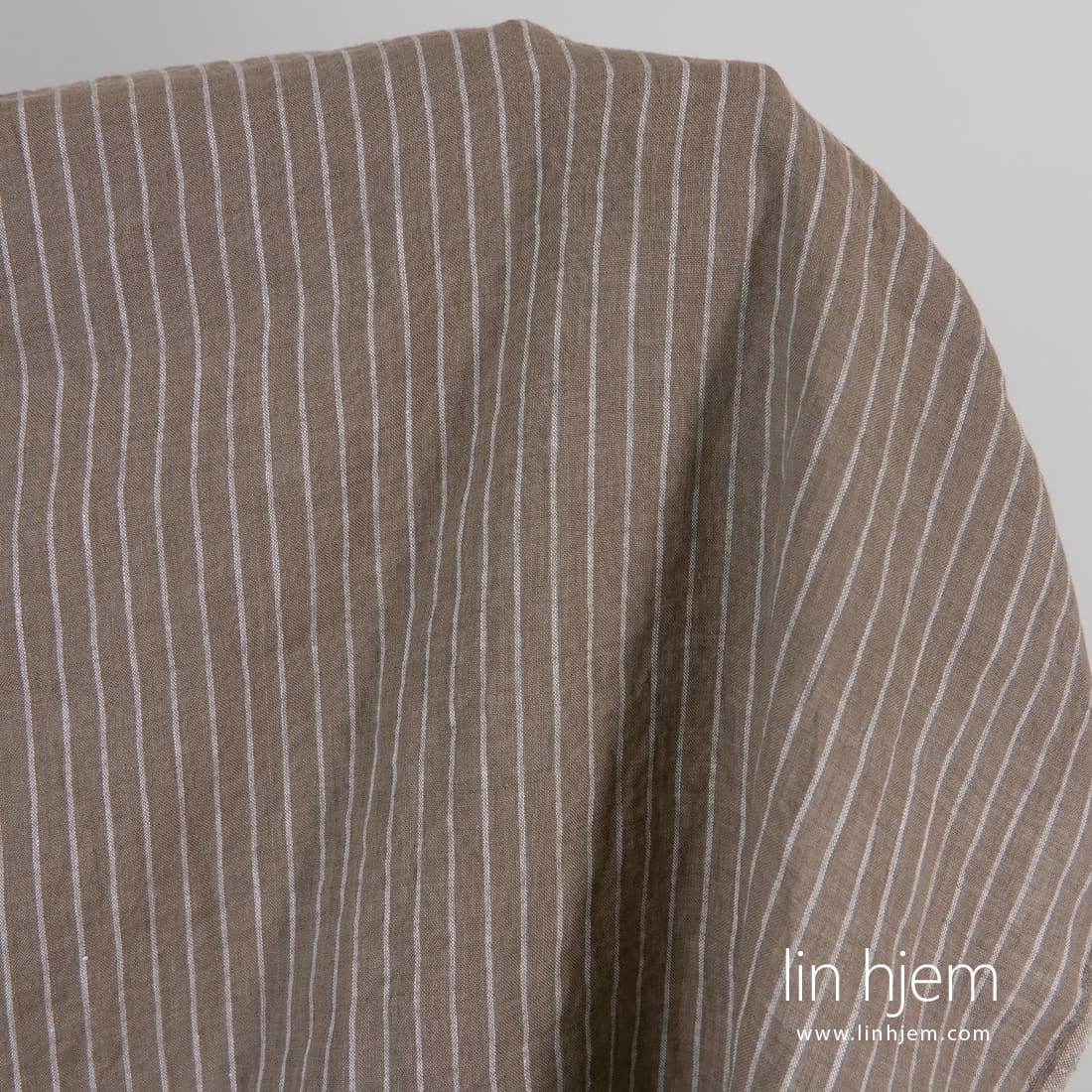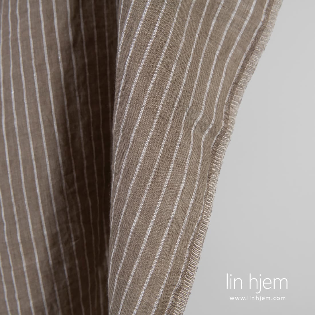 • Linstoff brunlig stripete vasket, mykt, skånsomt