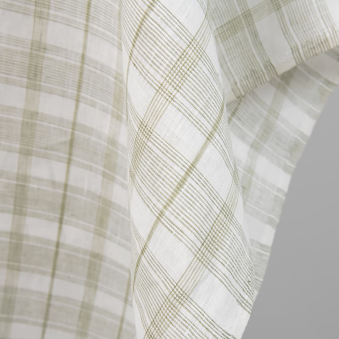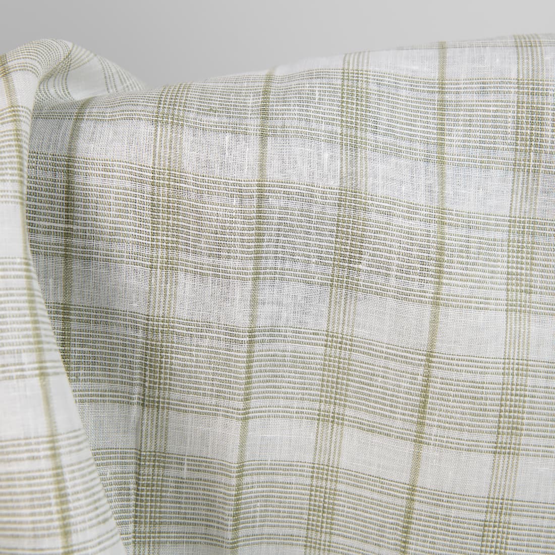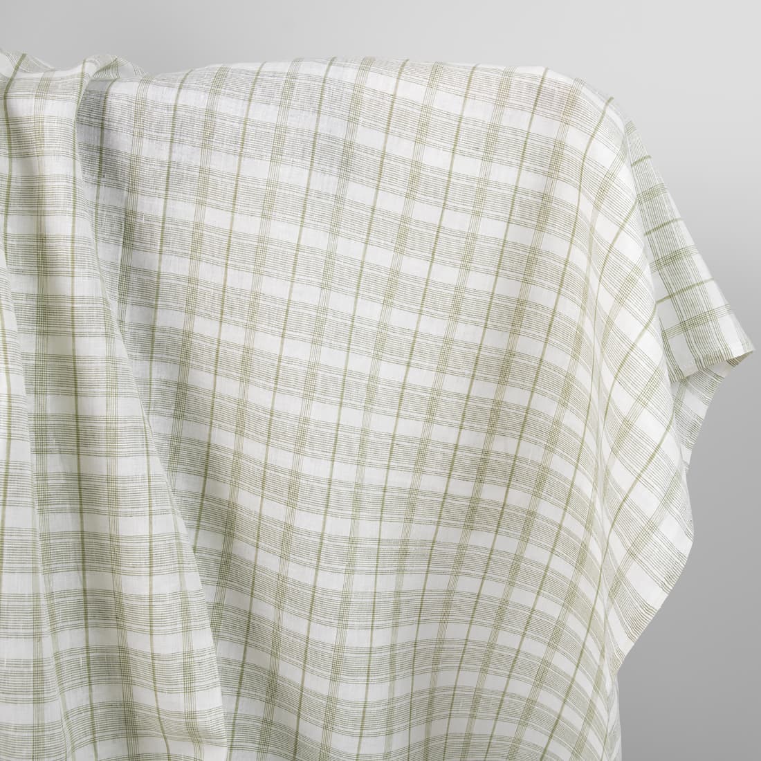 • Rutete linstoff vevd av olivengrønt og melkehvitt (gulaktig hvitt) garn