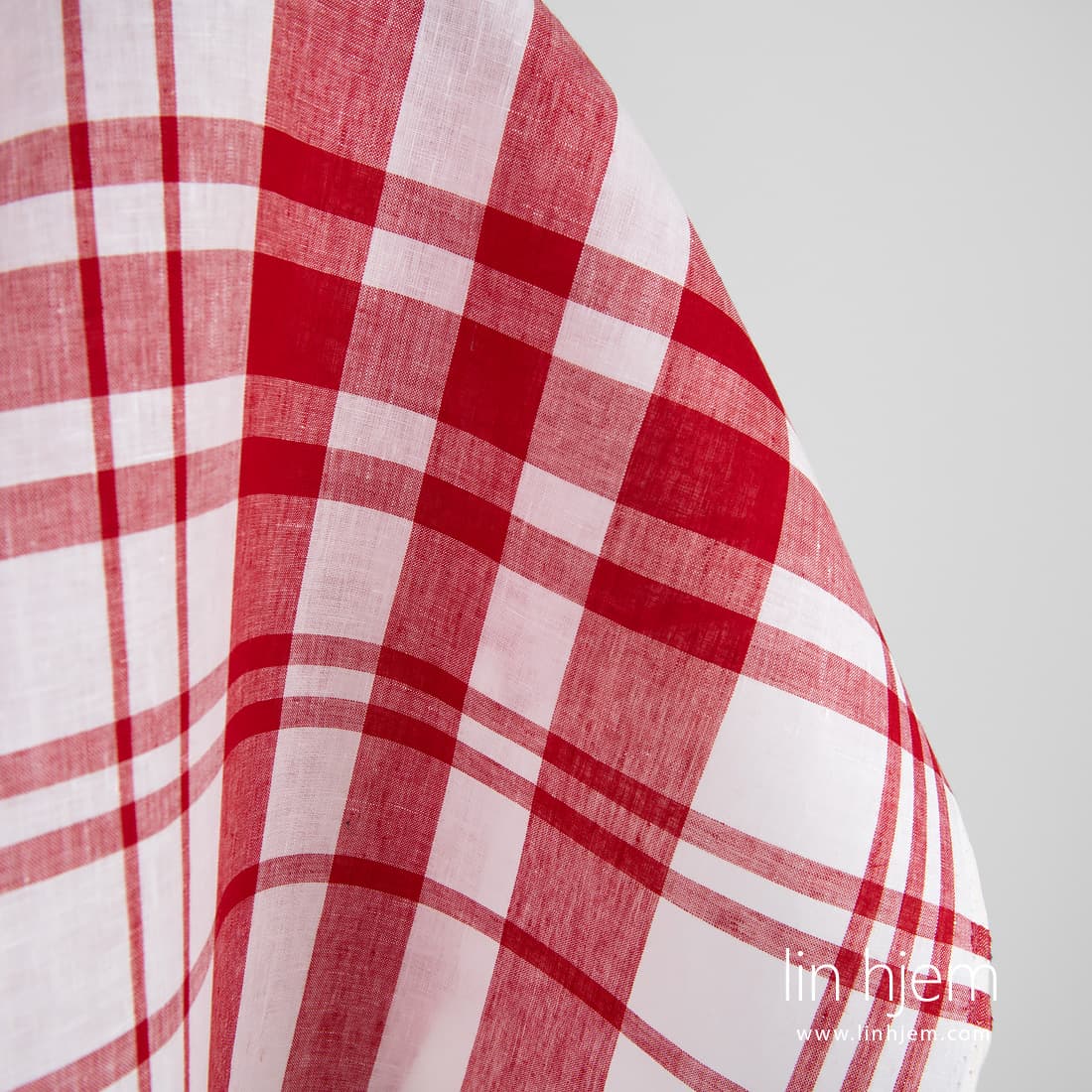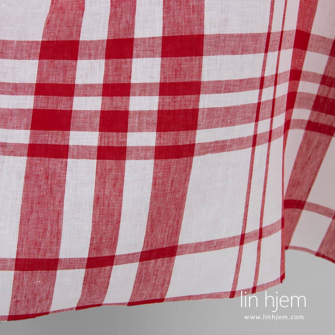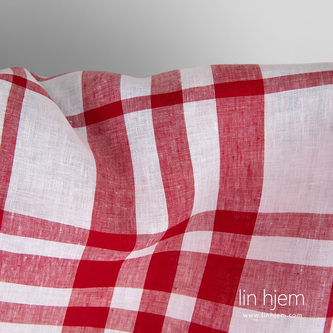 • Rødt-hvitt rutete 100% linstoff.