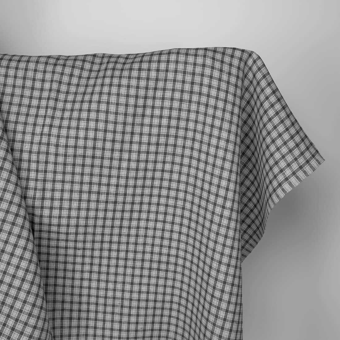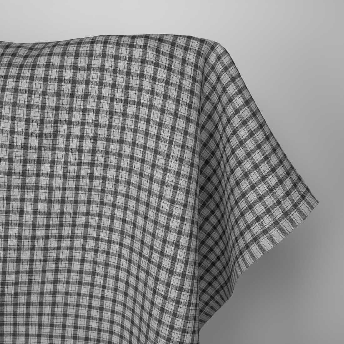 • Linstoff i fine grå ruter for sying klær, hjemmetekstiler