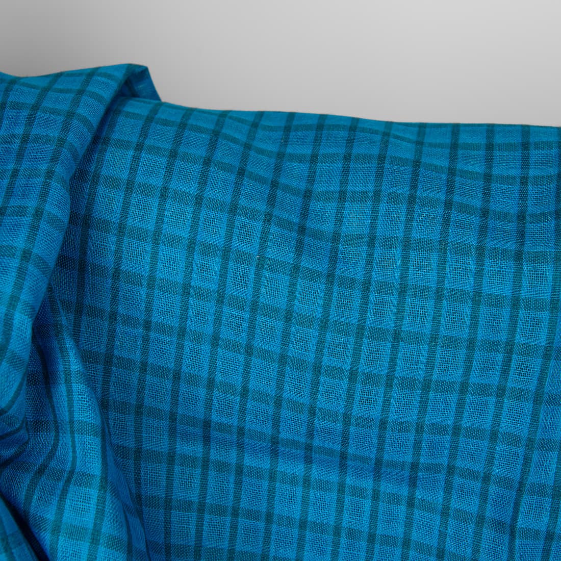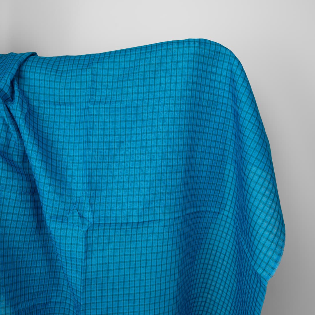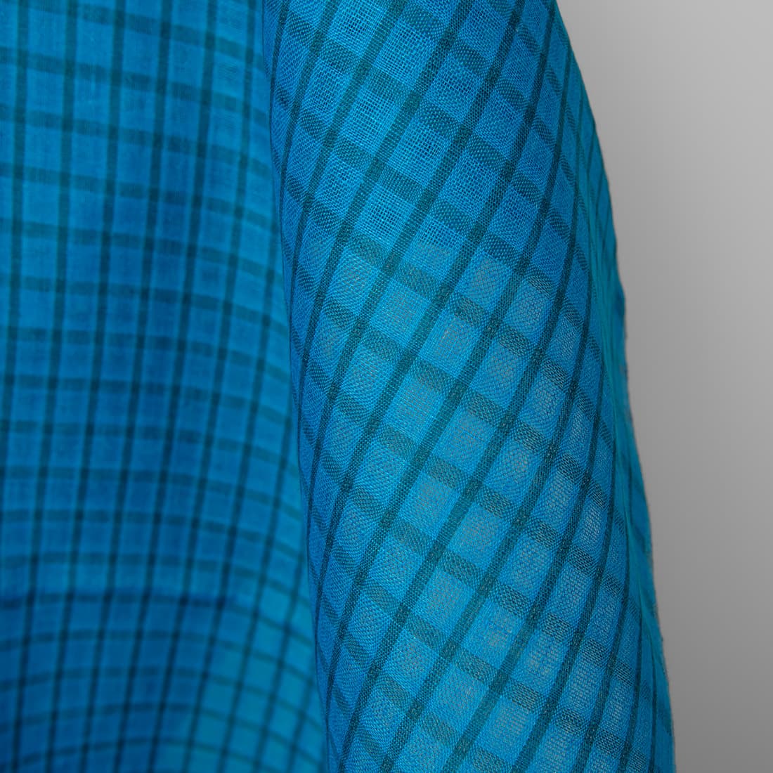 Linstoff i gjennomsiktige blå, turkise ruter