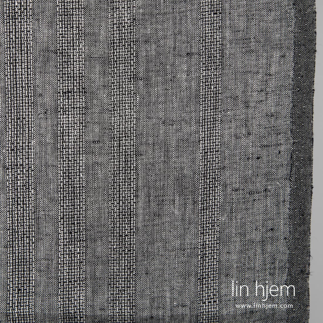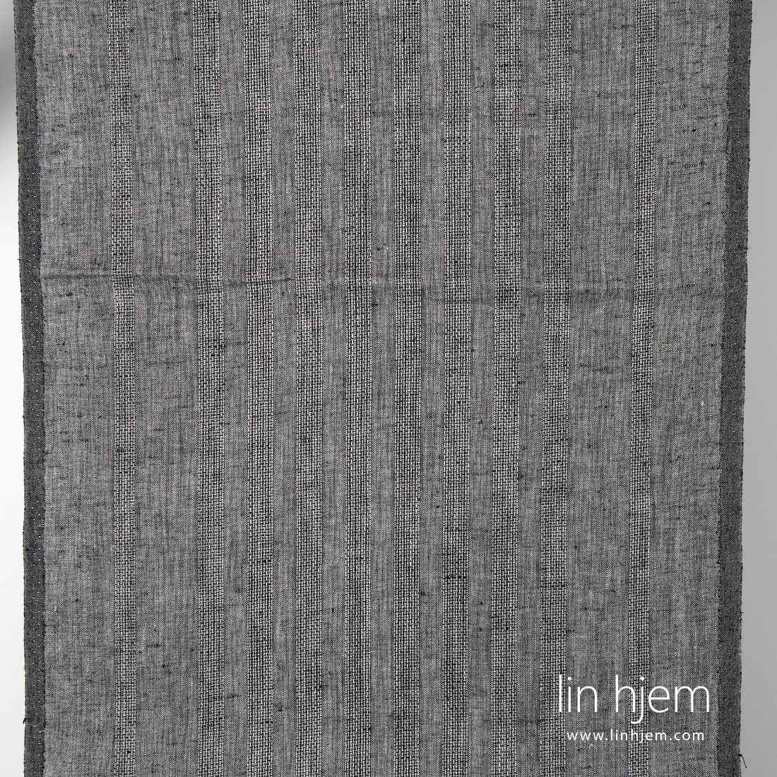 Linstoff i grå/svart med gjennomsiktige vertikale striper. Dette linstoffet er vevd fra svart og naturlig(ufarget) lingarn. Tettvevd, holdbart og absorberer fuktighet veldig godt.