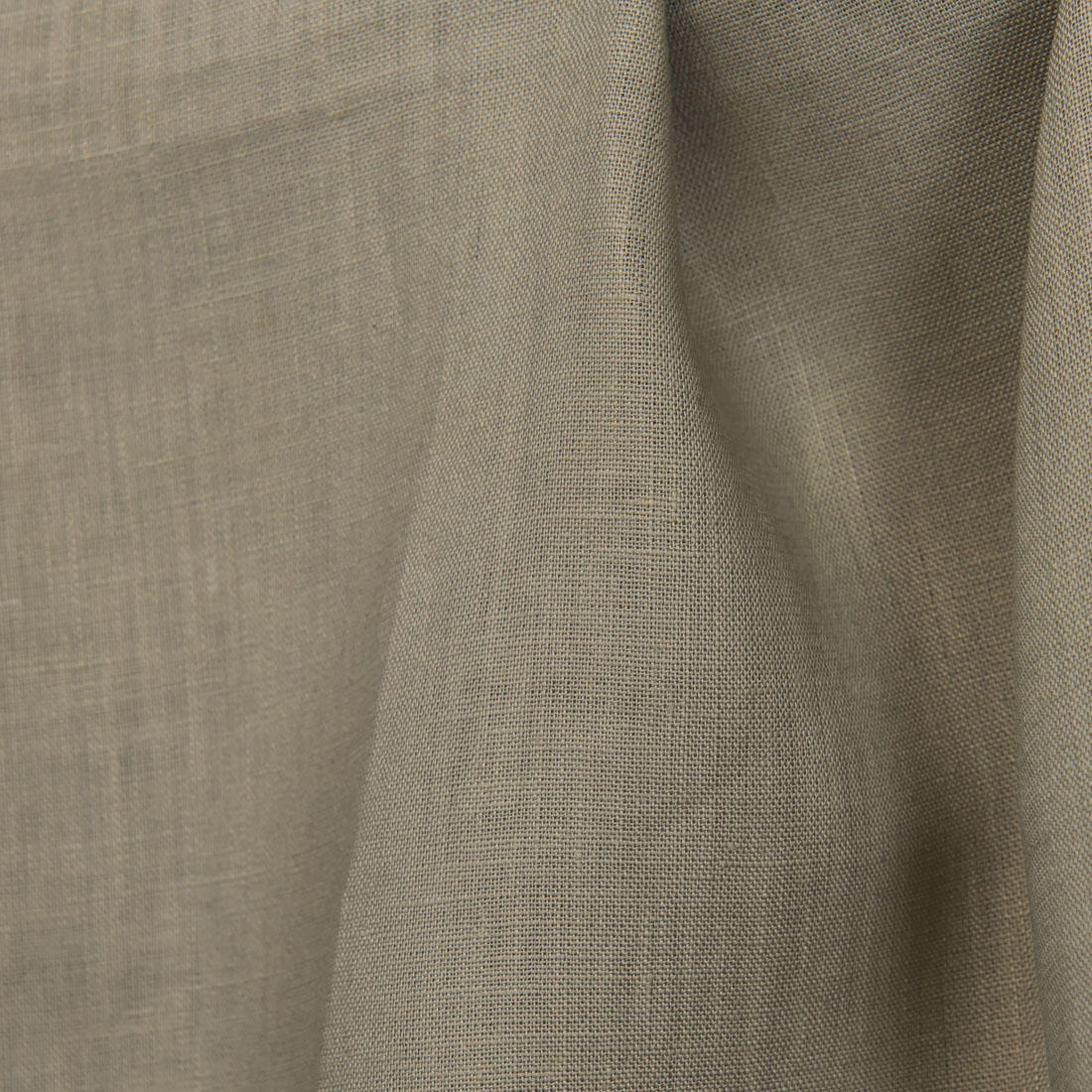 Linstoff i grønnaktig grå farge. Stoffet har litt brun farge i seg også. Tettvevd, kraftig og middels tykkelse og vekt. 100% lin rett fra produsenten.